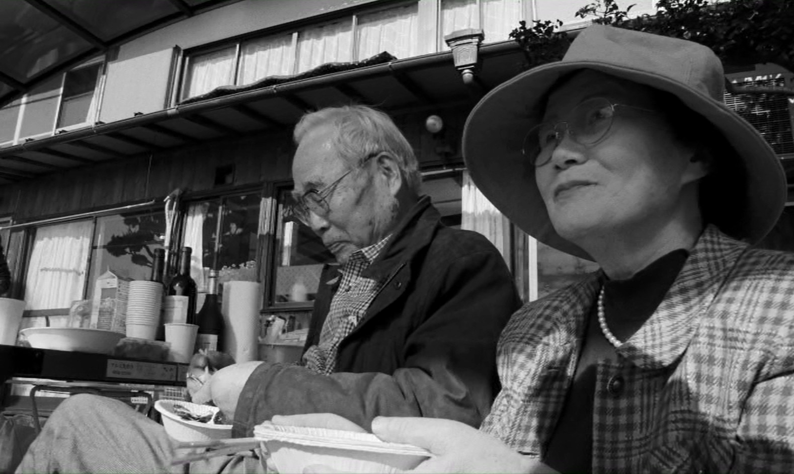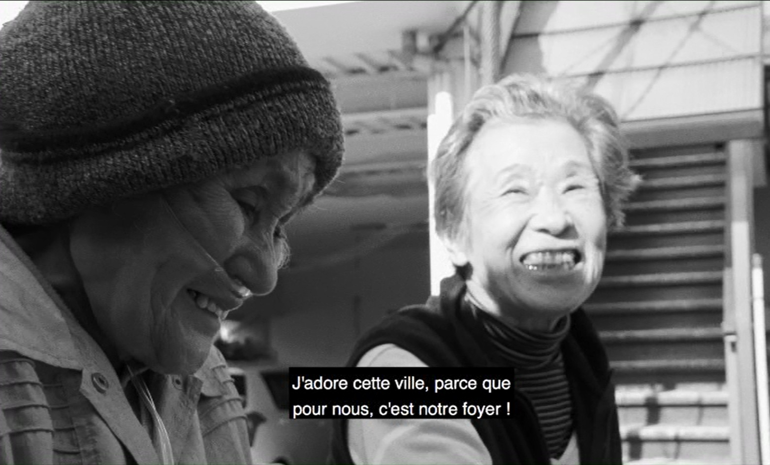 Kazuhiro Soda s’est fait une spécialité des "films d’observation". Traînant sur le quai d’Ushimado, il construit son film au gré des rencontres avec les habitants. Parmi cette galerie de portraits, deux personnages se détachent. Le premier, Wai, embarque le cinéaste sur son bateau, où il extrait méticuleusement du filet les sébastes qu’il ira vendre à la criée. Occasion d’observer le circuit du poisson, de la soute du pêcheur jusqu’aux étals de la poissonnière, Koso, qui a relevé le défi de maintenir son activité après la mort de son mari. Le deuxième personnage, Kumiko, met plus de temps à se révéler et emporte toute la dernière partie du film. Son insistance pour faire visiter le village au cinéaste cache une histoire malheureuse qu’elle finira par raconter. Le film donne alors à sentir deux manières de traverser la vieillesse : l’impeccable routine du pêcheur, pour qui le temps est une succession de gestes, et le désespoir de celle qui malgré les épreuves ne peut renoncer à vivre. Les images en noir et blanc rapprochent le film d’une tendance de la photographie japonaise tournée vers l’ordinaire et le paysage urbain.