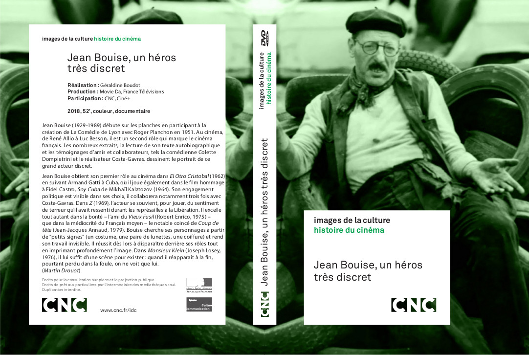 Jean Bouise obtient son premier rôle au cinéma dans El Otro Cristobal (1962) en suivant Armand Gatti à Cuba, où il joue également dans le film hommage à Fidel Castro, Soy Cuba de Mikhaïl Kalatozov (1964). Son engagement politique est visible dans ses choix, il collaborera notamment trois fois avec Costa-Gavras. Dans Z (1969), l’acteur se souvient, pour jouer, du sentiment de terreur qu’il avait ressenti durant les représailles à la Libération. Il excelle tout autant dans la bonté – l’ami du Vieux Fusil (Robert Enrico, 1975) – que dans la médiocrité du Français moyen – le notable coincé de Coup de tête (Jean-Jacques Annaud, 1979). Bouise cherche ses personnages à partir de "petits signes" (un costume, une paire de lunettes, une coiffure) et rend son travail invisible. Il réussit dès lors à disparaître derrière ses rôles tout en imprimant profondément l’image. Dans Monsieur Klein (Joseph Losey, 1976), il lui suffit d’une scène pour exister : quand il réapparaît à la fin, pourtant perdu dans la foule, on ne voit que lui.