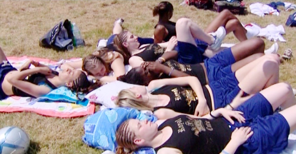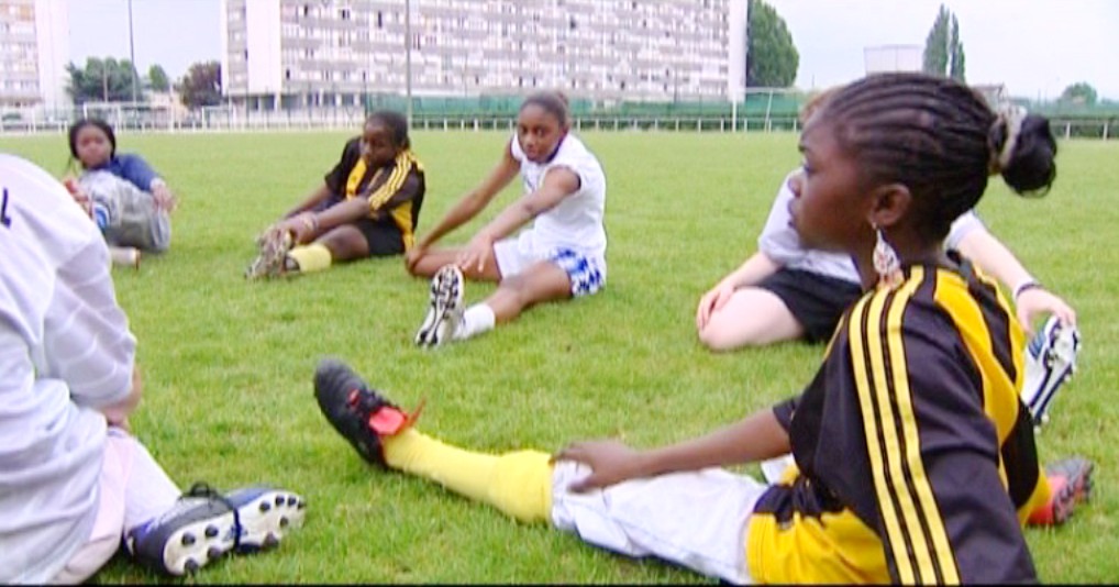 A Montfermeil (Seine-St-Denis), Cité des Bosquets, au pied des barres de béton taguées, un rectangle vert et précis : le stade et son terrain de foot. C’est là que Vanessa, Marie, Deborah, Gaëlle, Imane, Sébé et les autres filles du quartier viennent taper dans le ballon, loin des préjugés qui voudraient que, dans les cités, les filles n’ont rien le droit de faire à cause des traditions, des parents ou des grands frères.