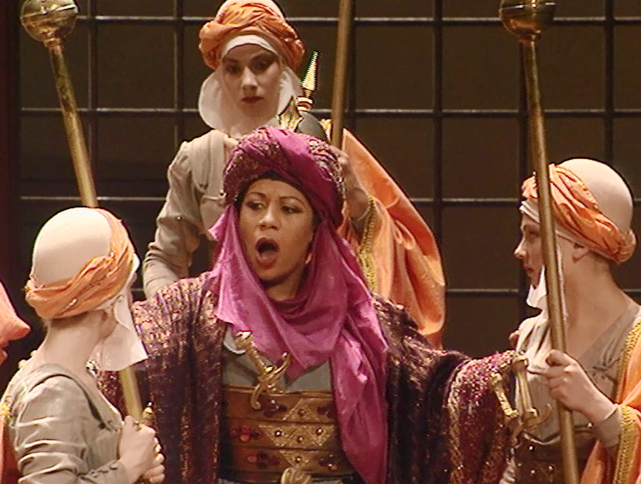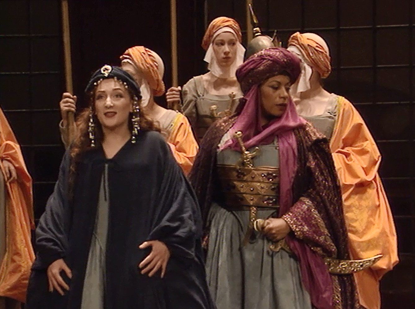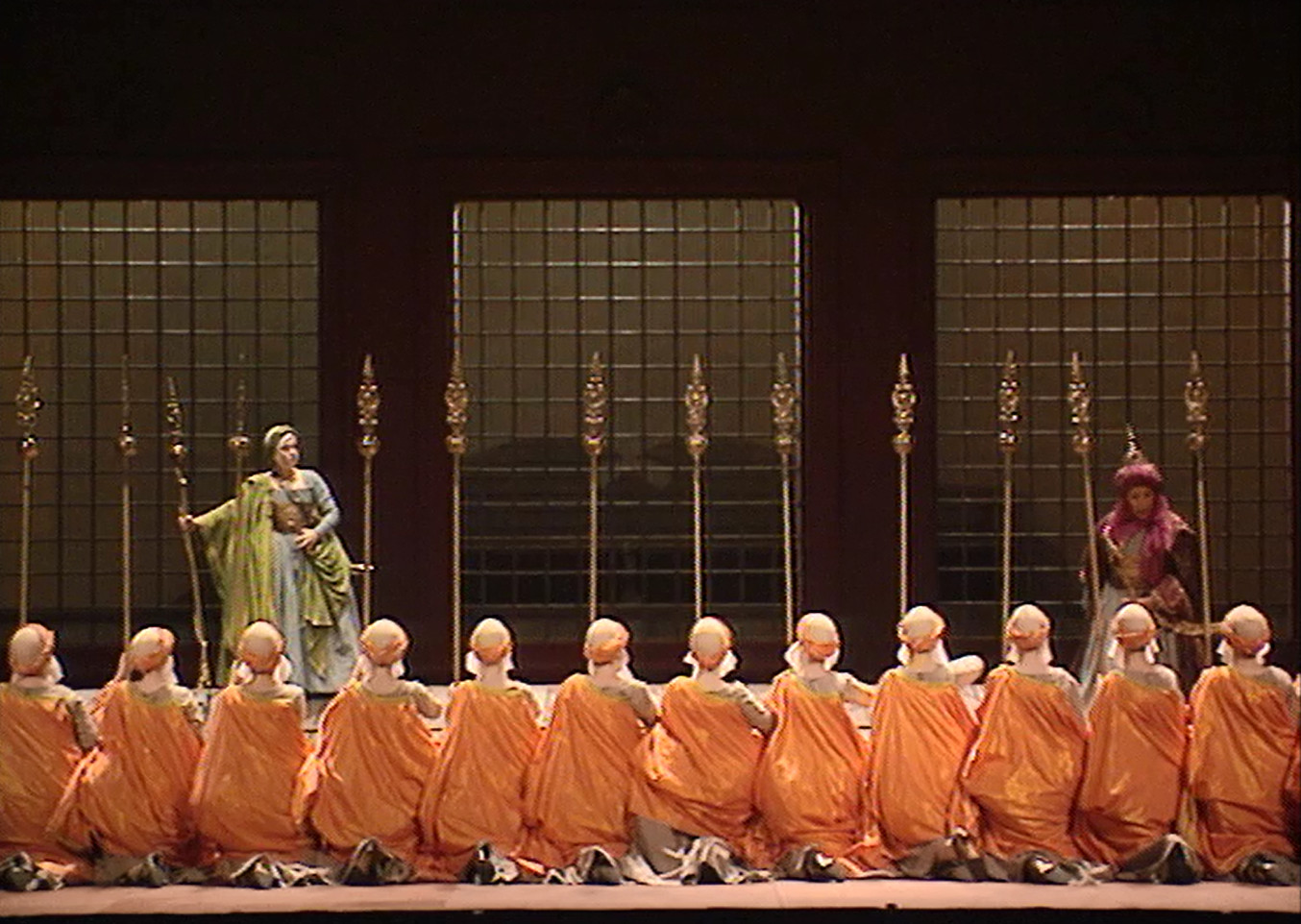 Lorsque Vivaldi composa en 1716 Juditha Triumphans, il souhaitait rappeler aux Vénitiens leur guerre contre l'Empire Ottoman, et particulièrement le siège de Corfou qui fut d'une importance vitale pour la place de Venise dans l'Adriatique. Judith représentait Venise, et Holopherne, le sultan. La mise en scène d'Alita Baldi, remarquablement servie par le décor et les costumes de William Orlandi, redonnent à ce drame la dimension charnelle et psychologique qui manque, par définition, à l'oratorio. Les personnages évoluent dans un décor unique qui les plonge d'emblée dans une sorte d'enfermement militaire : plancher sombre légèrement incliné, trois grandes grilles au lointain créant un deuxième espace. La lumière rappelle les clairs-obscurs de la peinture italienne.