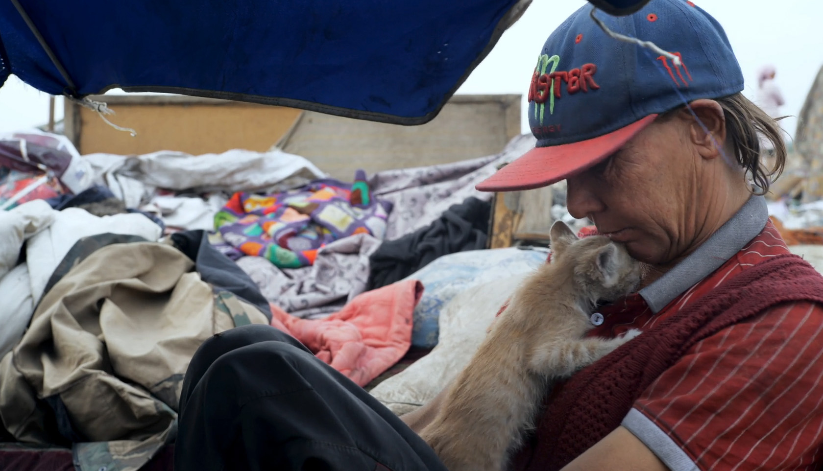 Les réalisateurs Denis Gheerbrant et Lina Tsrimova filment cette colline à toutes les échelles. Des plans larges, saisissants, montrent ce wasteland aussi bien de nuit —lorsque les déchets en flammes transforment le paysage en un enfer dantesque — que de jour, quand les fumées toxiques stagnent, survolées par les oiseaux charognards. Mais au-delà de cette désolation, c’est l’humain qui reste au centre du film. Caméra à l’épaule, les cinéastes s’approchent des visages, des gestes, des voix. Parmi les figures marquantes : Alexandre, ancien militaire tzigane, formé comme sniper et hanté par la mort de la majorité de son unité, et sa femme, depuis 27 ans, Alina.Tadjikhan, une femme âgée, qui travaillait pour le kolkhoze soviétique avant de l’arrivée de la démocratie, nous raconte le regard ému comment elle a perdu son mari et cinq de ses huit enfants... Son fils, Keyrat, qui arpente la décharge la nuit, une lampe frontale éclairant son chemin à travers les ordures, nous récite par cœur un poème d’amour qu’il a écrit...L’importance de La Colline tient sans doute à son propre geste : redonner la parole (et l’image) là où tout semble condamné au silence. Aller à contresens du système, filmer les marges, refuser l’oubli.