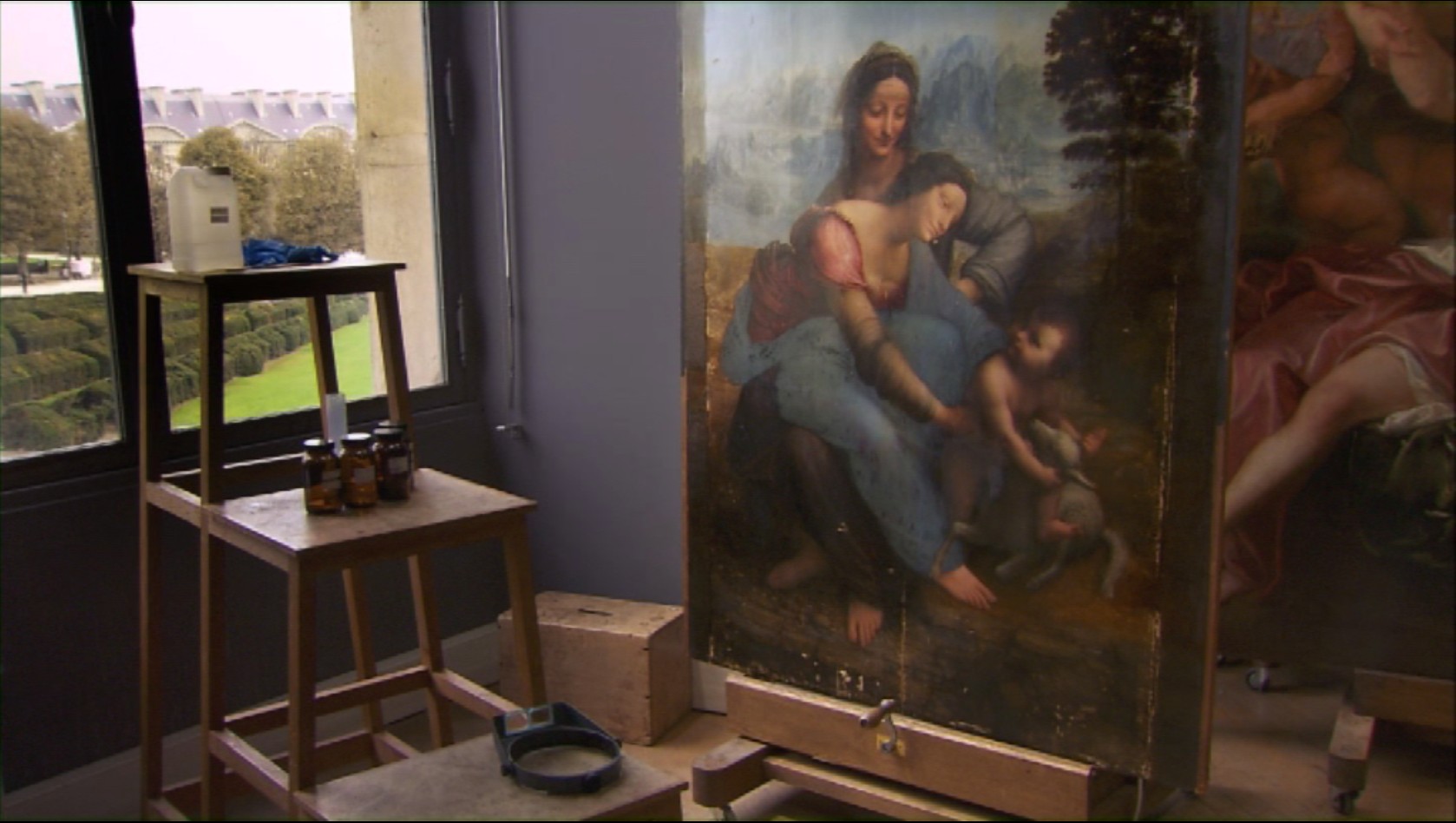 La restauration de La Vierge à l'Enfant avec sainte Anne de Léonard de Vinci, par les équipes du département des peintures du musée du Louvre.