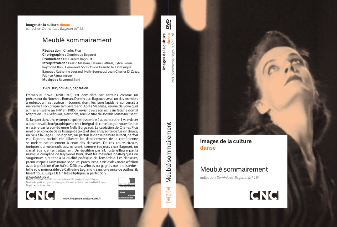 Emmanuel Bove (1898-1945) est considéré par certains comme un précurseur du Nouveau Roman. Dominique Bagouet sera l’un des premiers à redécouvrir cet auteur méconnu, dont l’écriture lapidaire convenait à merveille à son propre tempérament. Après Mes amis, oeuvre de Bove qu'il a mise en scène au TNP en 1985, il revient vers son écrivain fétiche dont il adapte en 1989 Aftalion, Alexandre, sous le titre de Meublé sommairement.