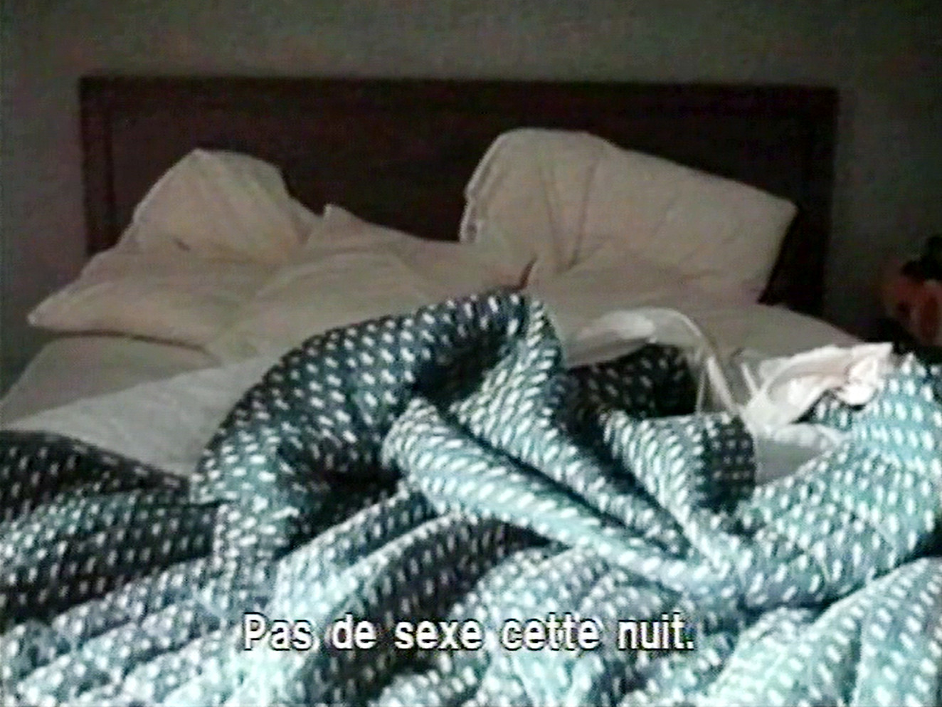 Il y a bien, au beau milieu du voyage, cet arrêt inquiétant en pleine Amérique réactionnaire, le Middle West probablement. Mais à part ça, le pays que Calle et Shephard traversent n’est qu’un pays de restoroutes, de garages et de motels. C’est le plus souvent à l’avant d’une vieille Cadillac qu’ils se filment l’un l’autre, et commentent en alternance l’impossible situation dans laquelle ils se retrouvent. Lui n’est venu que pour mieux lui échapper, elle pour l’accaparer. Entre eux, le dialogue ne prend jamais le pas sur cet échange de voix off, expression de deux intériorités enferrées dans la solitude. Le film ressemble davantage à un roman-photo, raconté au discours indirect, au détriment des scènes in vivo, rares éclaircies dans cette fuite en avant. "No sex last night", répété chaque matin par Calle sur l’image d’un lit vide - et bien qu’il participe largement du comique du film -, scande ce déficit de communication et témoigne de l’arithmétique complexe du désir.