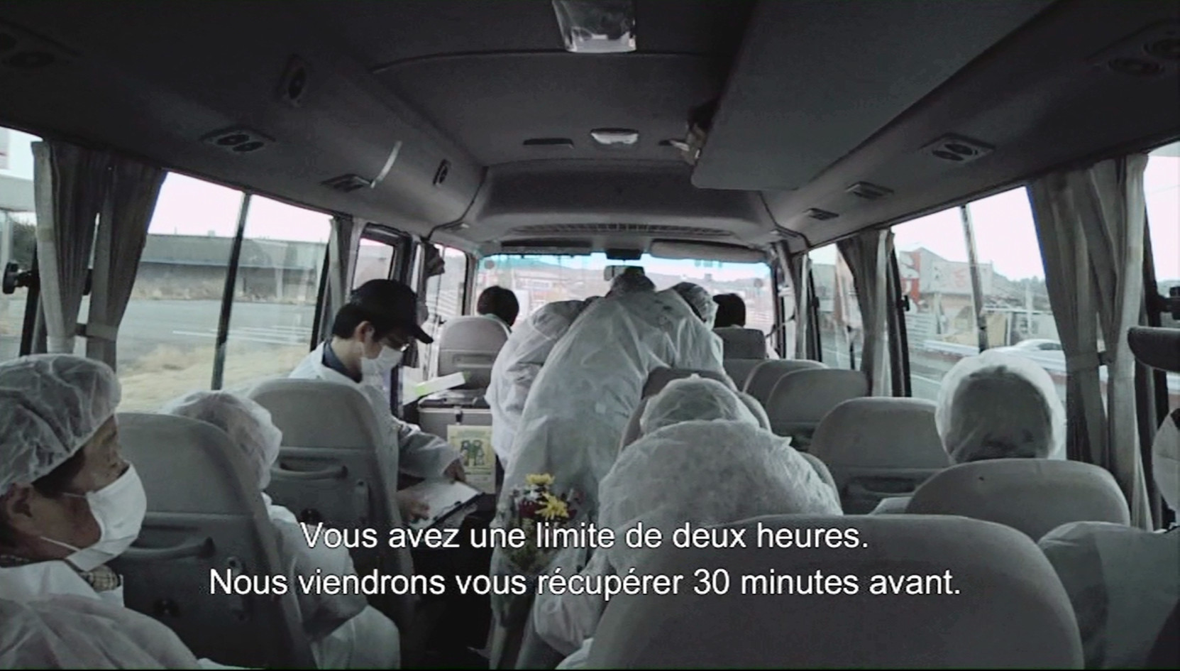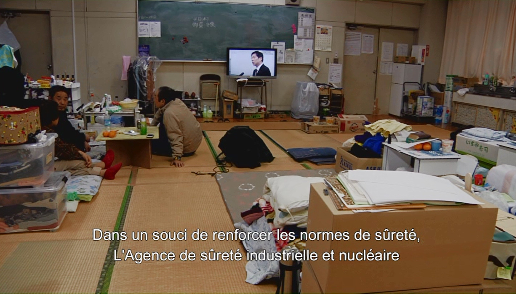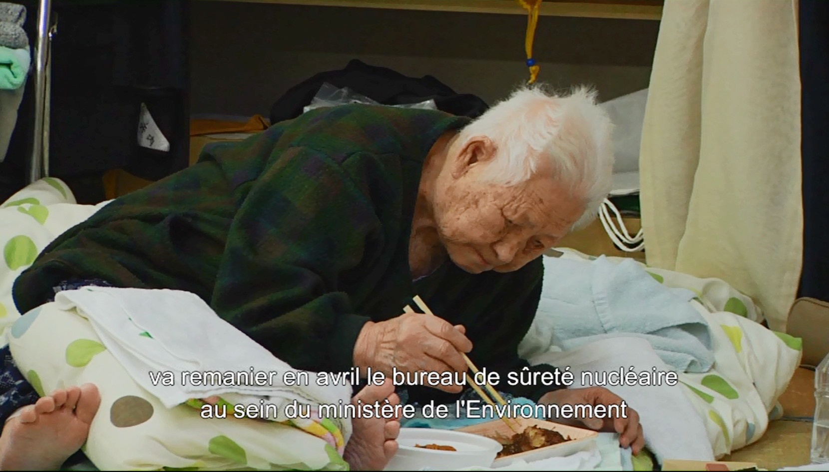 Loin de Futaba, tel est le titre japonais d’une série de documentaires en cours dans laquelle Funahashi dépeint les suites de la catastrophe. Ce qui signifie, non seulement arpenter une ville morte, délabrée, pendant des laps de temps forcément courts ("no man zone" oblige), mais surtout s’installer durablement auprès des "exilés" des villes de Kazo ou d’Iwaki, à plusieurs centaines de kilomètres de là. Personnes âgées pour la plupart, les actifs ayant souvent trouvé de quoi se loger ailleurs. Toute une population ainsi délaissée, mais en première ligne des jeux politiques dont le maire Katsutaka Idogawa est bientôt victime. Caméra épaule ou plans filmés au téléphone, entretiens, cartons explicatifs, archives photographiques, Funahashi use d’une grande diversité de matériaux pour rendre compréhensible une situation inextricable – dont le désastre forme l’unique perspective passée ou à venir. La détresse et la rage des victimes n’en sont que plus implacables.
