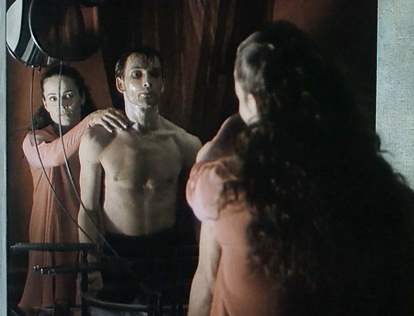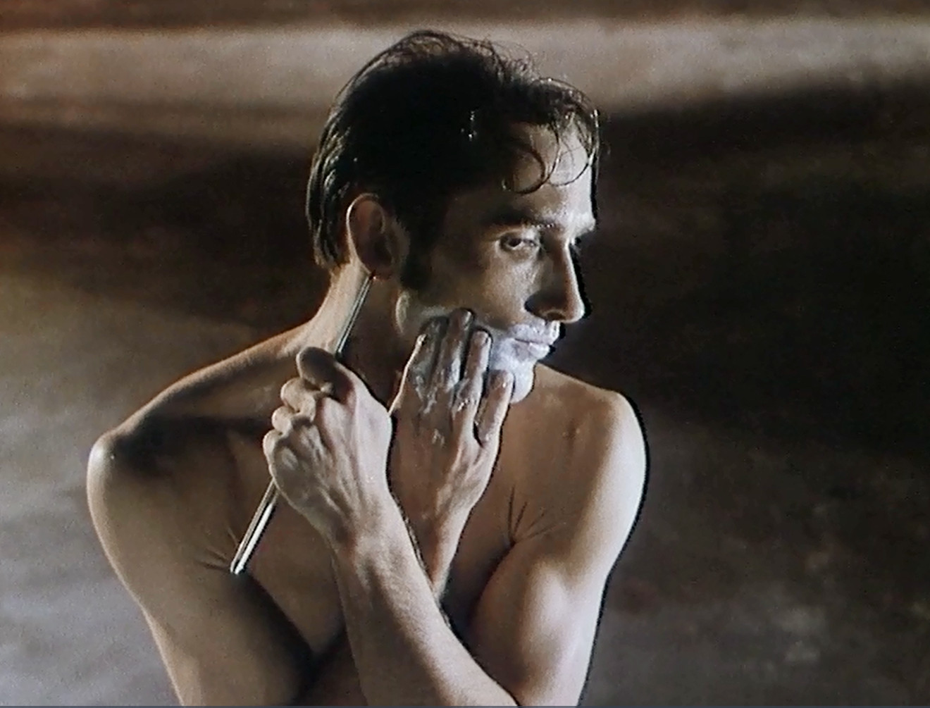 Dans une salle de bain stylisée, un homme et une femme semblent prendre beaucoup de plaisir à se déchirer et à rejouer à l'envi des scènes d'étreinte ou de répulsion dans lesquelles un rasoir-couteau tient une place symbolique importante. Les enlacements, les gestes qui forcent le corps de l'autre et le plient sous l'autorité du désir, donnent l'occasion au réalisateur de s'attarder sur la plastique et la présence crue de Pascal Allio, blond énigmatique au regard transparent. L'orchestre, qui joue une partition originale de Jean-Claude Wolff, est inclus dans le décor comme le témoin immobile et pétrifié du déchirement entre les deux personnages.
