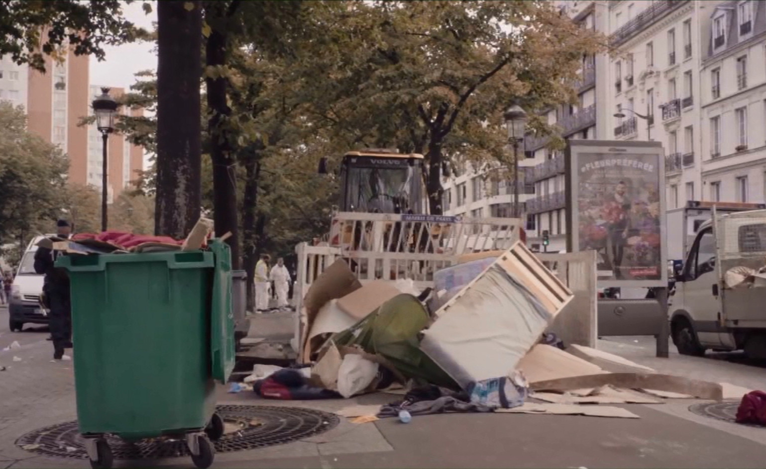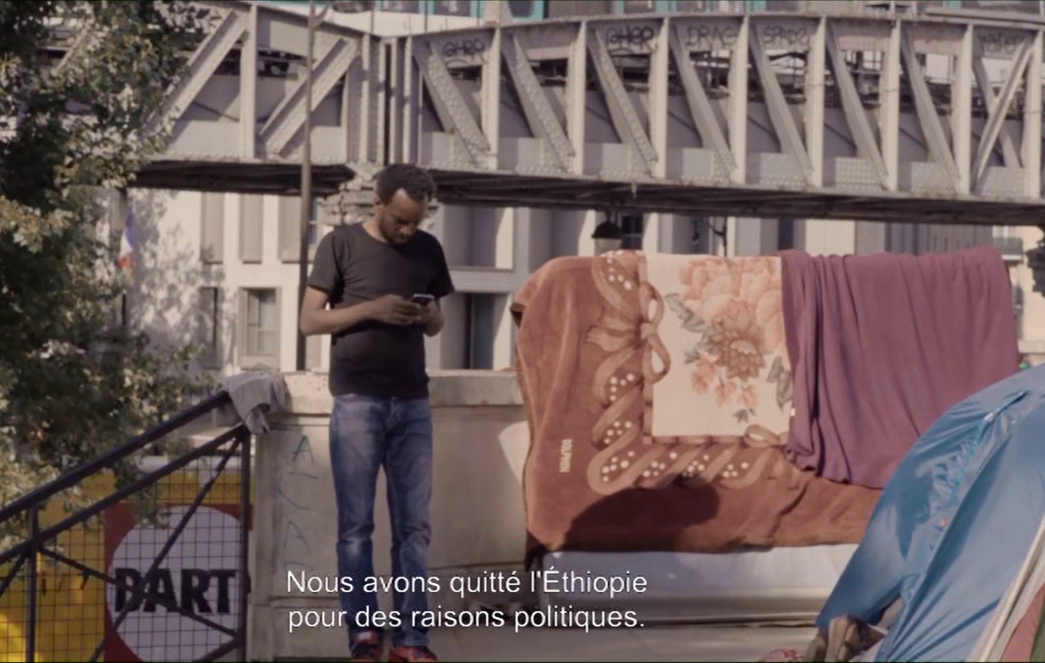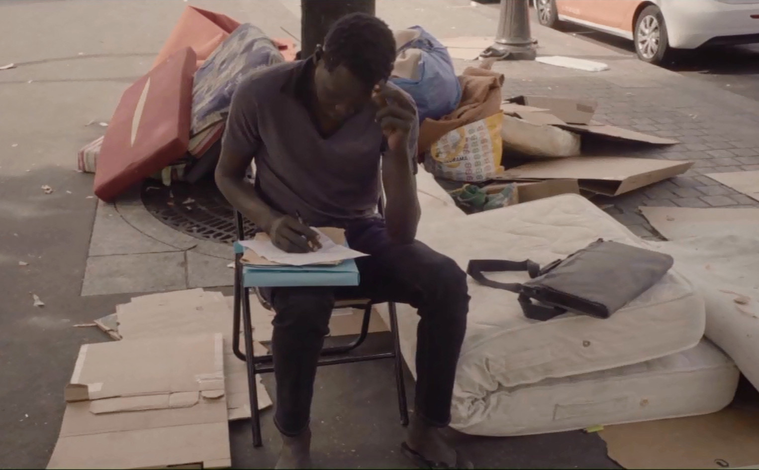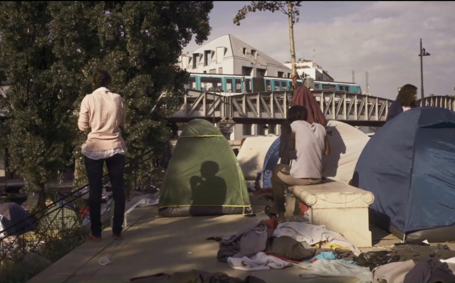 "Personne ne quitterait père et mère pour venir dormir ici dans la rue et vivre dans la douleur." Et pourtant, sur une dalle de béton ou un carré de pelouse au milieu du trafic routier, la survie s’organise. Des volontaires assurent les distributions de repas, on se lave directement dans l'eau du canal proche, on s'échange les informations sur les démarches à engager. Mais cette solidarité est mise à mal régulièrement par les interventions musclées de la police et la caméra nous place au coeur des brutalités. Les étrangers sont évacués en bus, les camions de nettoyage de la ville font le reste, broyant tentes, matelas, affaires personnelles. "Ils ont détruit nos abris. La police a effacé nos vies." Des membres d'associations s'interposent encore entre les exilés et la police, guident certains vers des structures d'hébergement. Face à cette désillusion, Souleymane, casquette vissée sur la tête, déclame des poèmes emplis de douceur et d’amertume en errant dans les rues du Nord parisien.