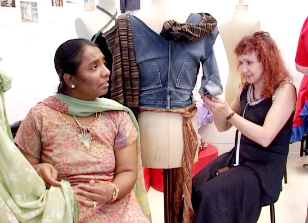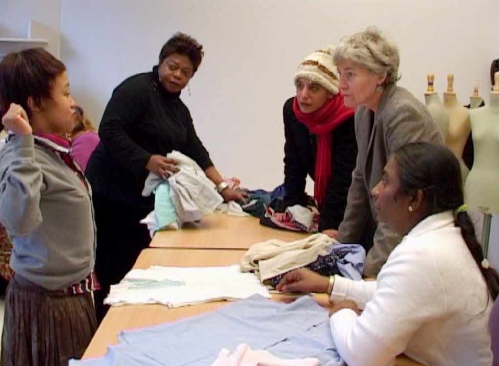 "On est là pour désobéir" rappelle régulièrement Sakina M'Sa, pour qui le vêtement est avant toute chose un moyen d'expression. D'origines et de milieux différents, les douze couturières improvisées sont incitées à exprimer leurs racines, leur histoire, tout en se libérant des schémas vestimentaires préconçus. Pour cela, il faut suivre la méthode imaginée par Sakina : visite au musée tout d'abord, pour analyser avec une conférencière les tenues de femmes représentées dans la peinture (La Femme aux gants de Giron ; Les Demoiselles du bord de la Seine de Courbet...), puis utiliser des vêtements préexistants, les découper, les raccorder, les superposer, pour en dégager des formes nouvelles. Chacune des femmes va réagir de manière singulière - parfois même négativement - mais pour toutes, qui retrouveront ensuite "le quotidien et ses difficultés", l'expérience aura été l'occasion de s'exprimer, de se savoir capable de créer et, finalement, de reprendre confiance en elles.
