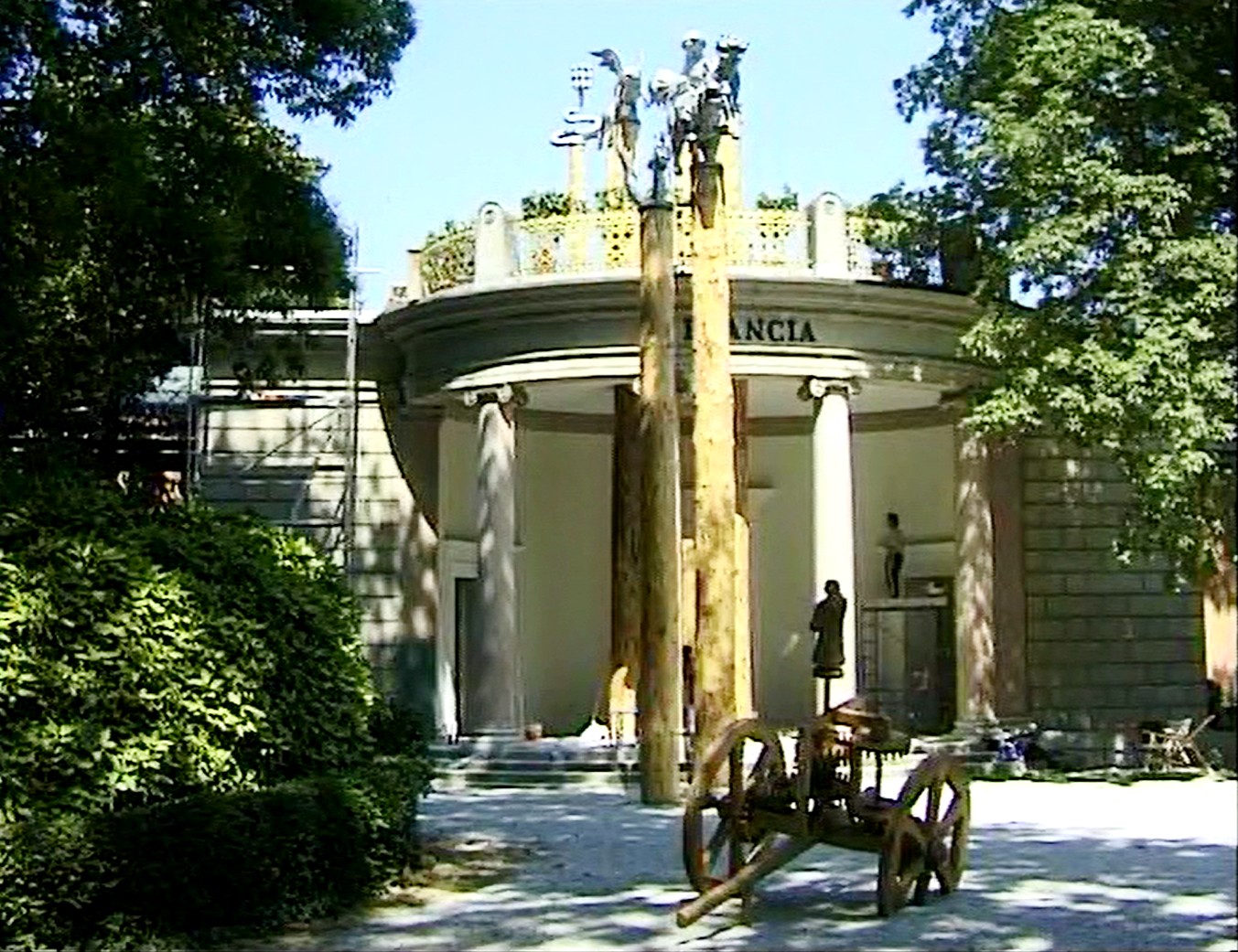 Février 1999, rencontre à Venise. Huang Yong Ping, artiste chinois installé à Paris, a décidé de réaliser des sculptures d'animaux, symboles des fléaux dans la Chine ancienne. Il veut intervenir directement sur l'architecture du pavillon en hissant ces sculptures au sommet d'immenses mâts de bois, placés au centre du pavillon et dépassant les verrières. Jean-Pierre Bertrand, lui, tâtonne encore. En avril, c'est la mise en place des œuvres. Le savoir-faire ingénieux des assistants doit faire face, d'un côté à la manipulation de gigantesques troncs de bois, de l'autre à une intervention mesurée : Jean-Pierre Bertrand dispose des cédrats en équilibre sur des étagères de bois et de grandes plaques de papier encollé enrobées de miel contre les murs des salles latérales éclairées en jaune. Installées, les deux œuvres se mêlent avec harmonie.