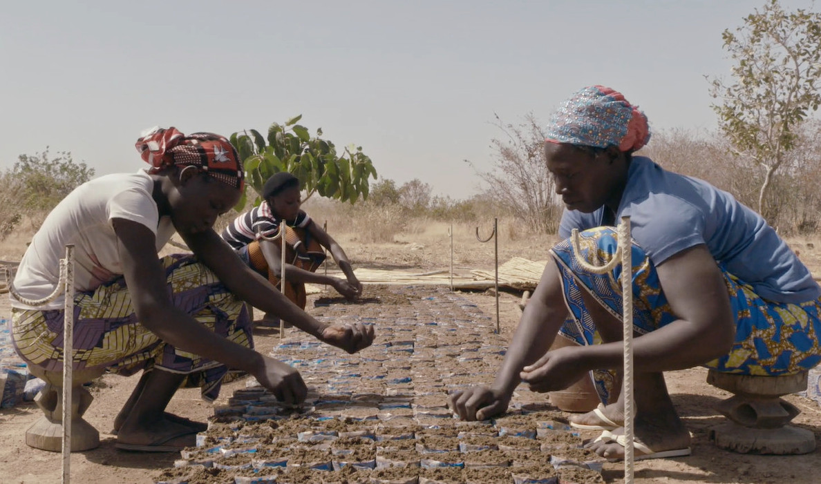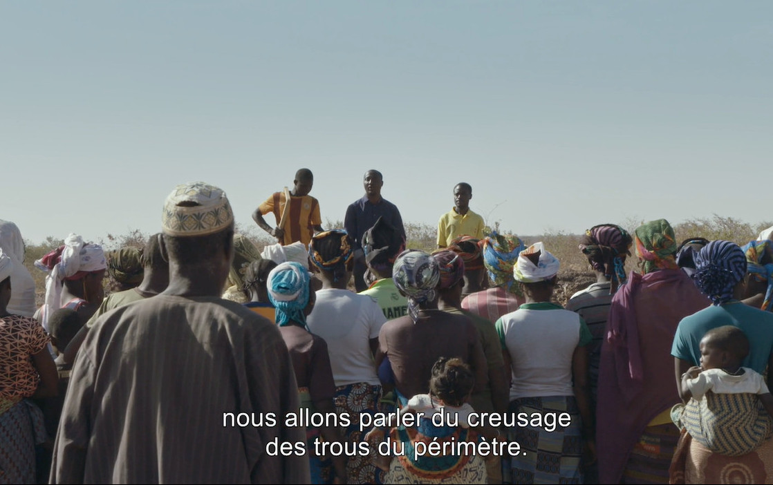 Face à la désertification des sols, les villageois peinent à développer une agriculture. La population augmente mais les jeunes fuient vers la Côte d’Ivoire. Les villageois prennent en main leur destin pour créer un jardin nourricier qui saura se contenter du peu d’eau qui tombe du ciel. Puisque l’expérience a déjà fonctionné dans un village voisin, ils vont s’en inspirer. Et c’est ensuite une armée de bras équipés d’outils rudimentaires qui va s’acharner, jour et nuit, à déplacer de la terre, installer des grillages, creuser des fosses de compostage, faire pousser des graines et planter des haies. La transformation du paysage s’effectue lentement sous nos yeux ébahis par la beauté des plans, par exemple lorsque des personnages, qu’ils soient à pied, en vélo ou en plein travail, traversent le cadre. Pas de commentaire, juste les villageois, leurs paroles et leur labeur. C’est beau, c’est dur, et plein d’espoir.