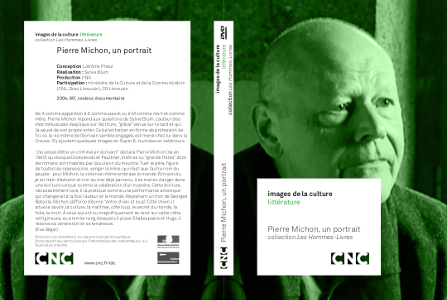 De A comme apparition à S comme sauvé, ou à M comme mort et comme mère, Pierre Michon répond aux questions de Sylvie Blum. L’auteur des Vies minuscules s’explique sur l’écriture, "grâce" venue sur le tard et qui l’a sauvé de son propre enfer. Ce bel entretien en forme de profession de foi, où la vie même de l’écrivain semble engagée, est mené chez lui dans la Creuse. S’y ajoutent quelques vues en Super 8, tournées en extérieurs.