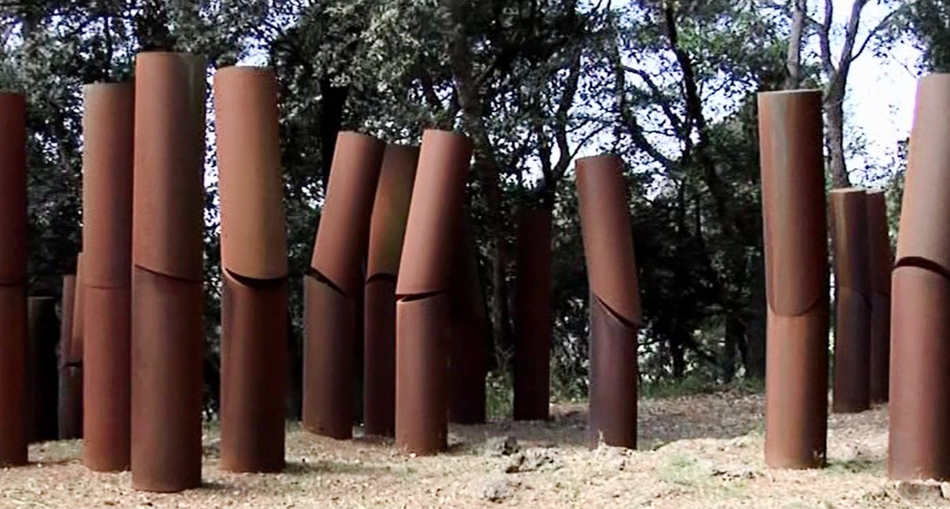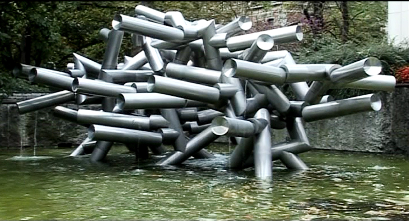 Peintre surréaliste à ses débuts, Pol Bury (1922-2005) s'ouvre à l'abstraction avec Cobra (revue et expositions de groupe). Bientôt fasciné par les mobiles de Calder, il délaisse le tableau pour la tridimensionnalité et crée des œuvres cinétiques. Il se nourrit des réflexions et des actions artistiques et décalées de l'Académie de Montbliart, qu'il fonde en 1953 avec des amis. Leur revue Daily-Bul vante "la culture du ténu" dont la bulle – et par dérivation la boule, forme emblématique chez Bury – est un modèle. Installé à Paris puis à New York, Bury traque le mouvement : illusionniste, comme dans ses bijoux ou encore ses images "cinétisées", dont certaines parties subissent de légers déplacements en série ; ou bien réel, comme dans sa Forêt de colonnes animées, créée chez Renault. Toujours lent, pour surprendre de façon poétique, le mouvement a parfois une dimension sonore comme dans ses Sculptures à cordes ou dans ses fontaines aux sphères d'acier, mues par l'eau chantante.