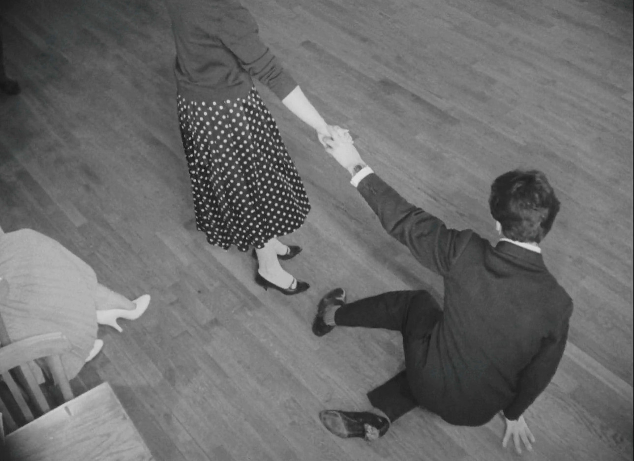 Dans une salle de bal populaire, au début du film quasi vide, une foule hétéroclite de danseuses et danseurs plus ou moins expérimentés envahit peu à peu la piste de danse. Parmi eux, un jeune homme timide tente de trouver le courage d’inviter une des jeunes femmes à danser. Avec la musique comme seule bande son, Jean-Daniel Pollet (1936-2004) enchaîne les jeux de regards pour tout dialogue.