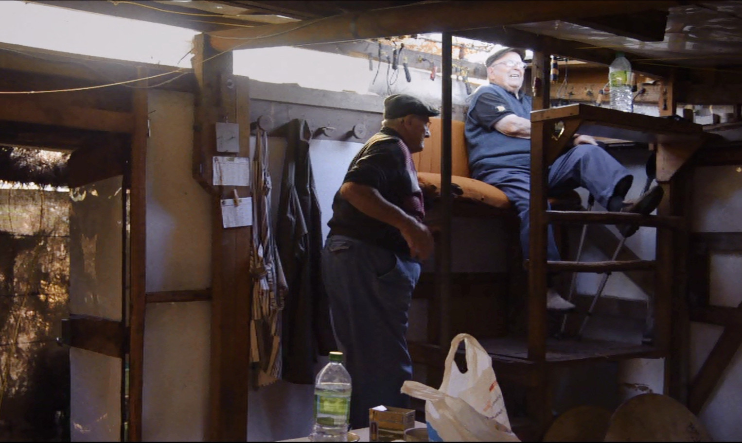 "Il n’en passe aucune. Encore une journée bredouille !" Le temps s’allonge, les paroles se font rares, l’attente de la palombe s’est installée. Elle laisse malgré tout une place au dialogue intergénérationnel. Alors que les plus jeunes initient les plus âgés aux nouvelles technologies en tuant le temps sur leurs smartphones, les aînés intègrent leurs cadets aux rouages de cette chasse originale et à l'élevage des proies. Quand celles-ci ne sont pas hissées sur la cime des arbres, elles sont méticuleusement gavées et mises à l’abri. La traque ne commence qu’une fois le jour levé. Soudain, alors que tous les yeux sont tournés vers le ciel, les proies attirent enfin leurs prédateurs. "Rentrez tous, rentrez tous là !" s’écrit l'un des chasseurs. Comme après toute chasse, le groupe se réunit autour des prises de la journée... et les pins continuent de tomber au lointain. "Comment tu fais après, tu mets des arbres artificiels ?" ironise un membre de la petite communauté.
