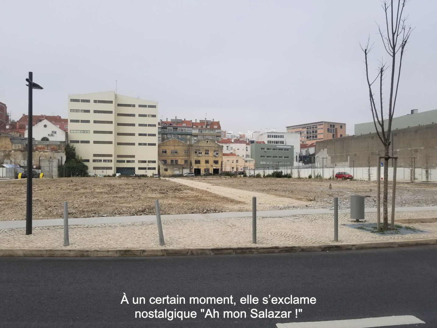 A partir d'un travail photographique, la réalisatrice nous transporte, au sens propre du terme, jusque dans un quartier populaire de Lisbonne. Nous y parvenons en regardant défiler des photos prises à travers les fenêtres du train, puis nous parcourons de la même façon les rues et le café dans lequel elle enregistre ses échanges avec des clientes. Chose étrange, ce lieu est souvent recouvert d’un brouillard épais, comme pour l'effacer, symbole de la destruction à venir de ce quartier qui laissera bientôt la place à un projet d'urbanisation de luxe. Inéluctablement, privé d'activités économiques, l'endroit est déserté et les habitants actuels expulsés. Tandis que les photos se succèdent, les bribes de conversations enregistrées témoignent de cette réalité glaçante empreinte de nostalgie. Bien que très court, ce film expérimental et poétique parvient à nous immerger dans une ambiance tout à fait singulière.