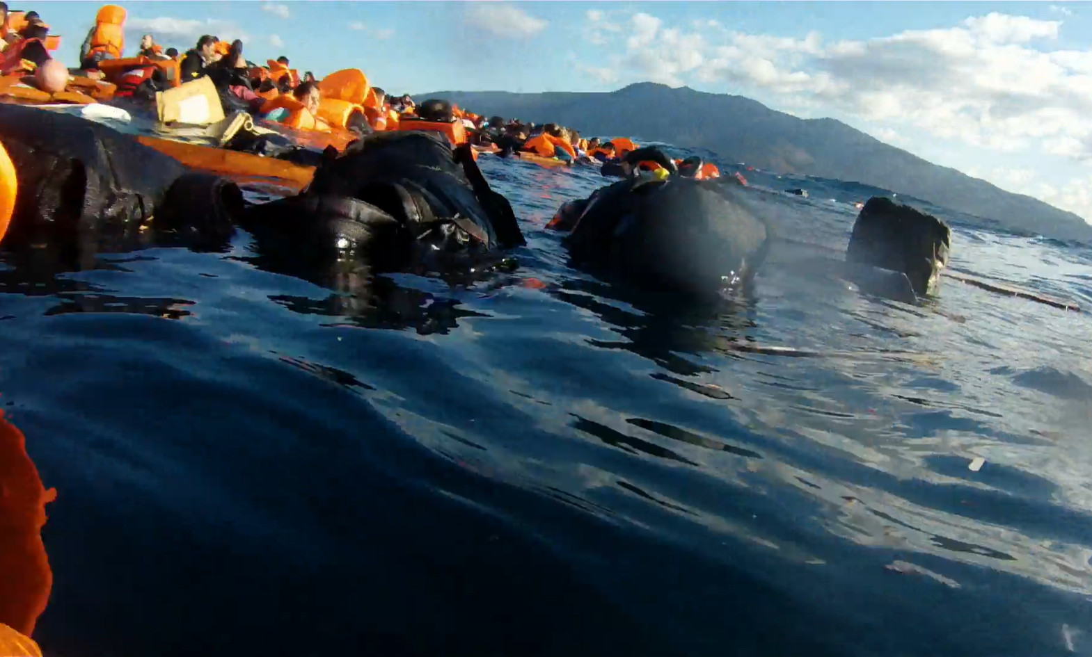 Le 28 octobre 2015 après-midi, le bateau sur lequel l'artiste syrienne Amel Alzakout (née en 1988) tente de joindre l'Europe fait naufrage entre les côtes turques et l'île de Lesbos. La caméra étanche qu’elle a attachée à son poignet, livrée à elle-même, filme une explosion de couleurs vives, entre le bleu du ciel et de l'eau transparente, les gilets de sauvetage orange et les vêtements des naufragés attendant les secours. Sur ces images folles et incontrôlées, l'artiste pose une voix off calme, qui rend compte de cette expérience à la fois intime et collective.