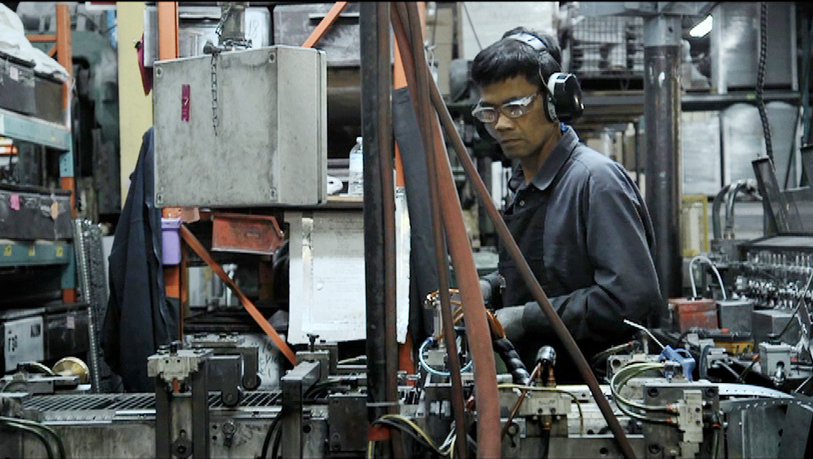 Dans un atelier tournent les machines. Elles ont chacune leur rythme, leur respiration, leur pesanteur. Les ouvriers qui les entourent ont l’air de s’ennuyer. Que reste-t-il à faire quand les machines tournent toutes seules ? Suivre la cadence, ajuster les pièces. Ou bien reprendre la discussion... Pour dire l’absurde du travail ou ce qui nous y rattache : la volonté de bien faire et de trouver sa place.