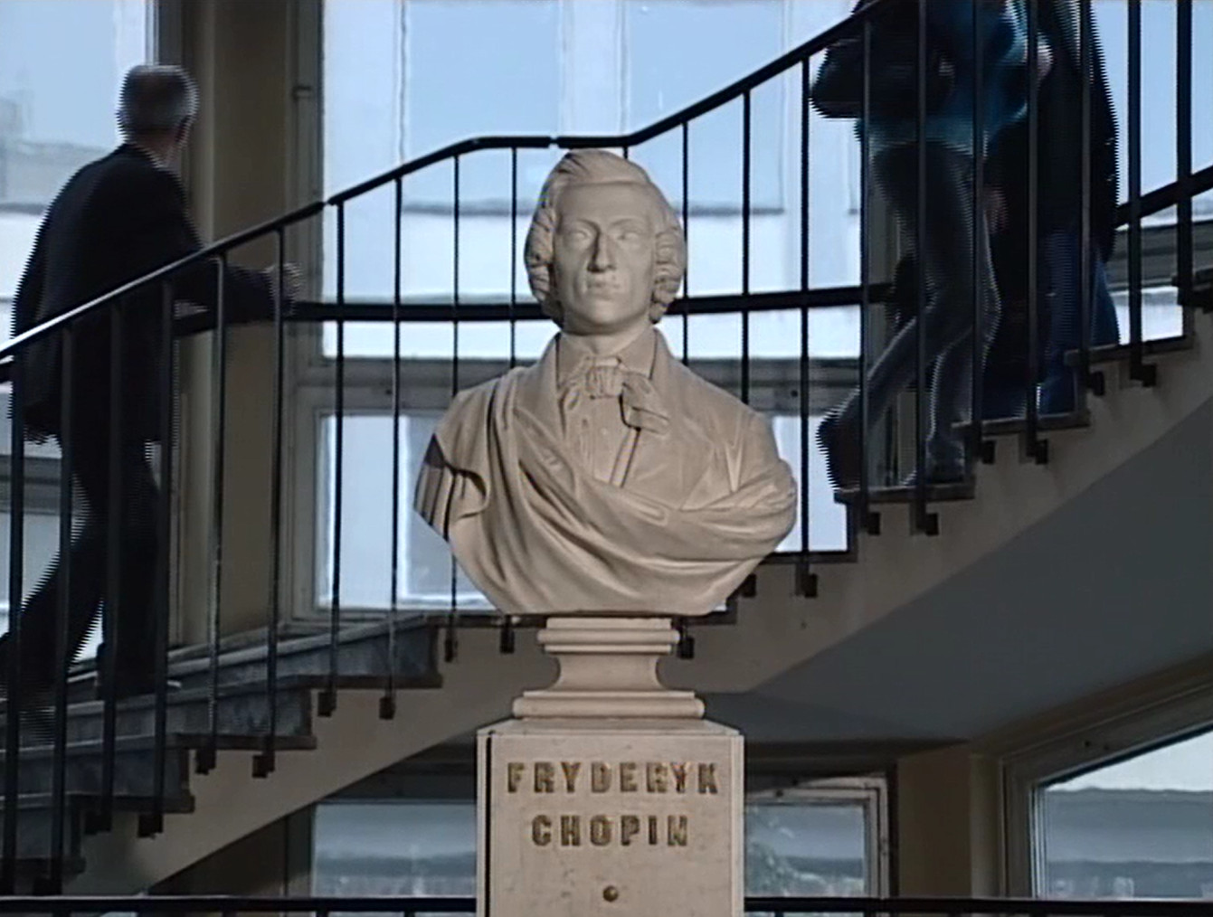 Polonais pour la plupart, les étudiants connaissent bien la musique de Chopin ; symbole de la résistance contre l’oppresseur russe, elle les berce depuis la plus tendre enfance. A l’Académie, tous doivent dépasser ce sentiment de responsabilité nationale s’ils veulent développer leur propre sensibilité dans l'interprétation de cette musique. Certains connaissent leurs limites : "Je ne toucherai jamais au concerto de Chopin, j’aurais trop peur de m’y perdre." Jan Ekier, enseignant, évoque la nécessité de développer chez ses étudiants la capacité à transmettre, simplement, une mélodie. Soumis à des pressions trop importantes, certains ne relèvent pas le défi et préfèrent renoncer en prétextant que les musiciens sont de plus en plus marginalisés en Pologne et qu’ils ne gagneront jamais leur vie en exerçant ce métier. Cette dure réalité de la compétition à l'Académie Frédéric Chopin concerne de nombreux pianistes, partout dans le monde.