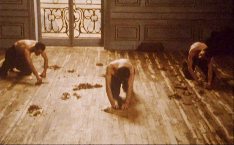 Autour des Raboteurs de parquet (1875) de Gustave Caillebotte, Angelin Preljocaj invente une chorégraphie d'hommes qui développe les attitudes de ces artisans dans une gestuelle faite de reptations, de chutes et de temps d'arrêt. Le cinéaste Cyril Collard, lui, imagine une intrigue amoureuse mouvementée tissée par-delà la danse muette et physique des hommes au sol. La caméra plonge entre les corps, au coeur de la danse. Le regard du cinéaste n'est pas indifférent à la plastique nerveuse des danseurs. Le montage pratique des allers-retours entre la danse, des bribes de dispute entre un homme et une femme qui se séparent et des détails du tableau. Un plan séquence final virtuose dévoile l'envers du décor et le studio de tournage.