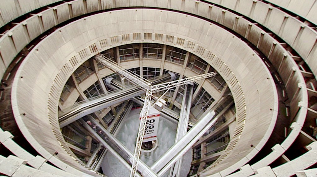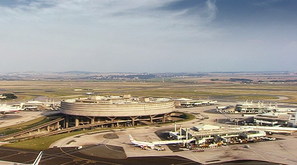 Pas de concours, ni de permis de construire pour ce projet d’ingénierie publique d’envergure. Pour sa première construction, Paul Andreu, jeune ingénieur des Ponts de 29 ans, imagine une sorte de silo monumental où les fonctions de départ, de transfert et d’arrivée sont organisées verticalement. Un entrelacs d’infrastructures routières dessert directement les trois étages de parkings aux façades aveugles de béton brut. Disposés en cercle autour de ce corps opaque, des satellites de forme trapézoïdale permettent aux avions d'accoster. Au centre du disque, pour déployer la circulation piétonne, un cratère à ciel ouvert présente un enchevêtrement de tapis roulants dans des tubes transparents reliant les étages. Cet espace, lieu de la métaphore, celle de l’envol mais aussi de la chute, questionne la symbolique d’un lieu de transit. Par cette allusion poétique au voyage, Paul Andreu refuse la banalité des lieux de passage génériques. Ingénieur et artiste.