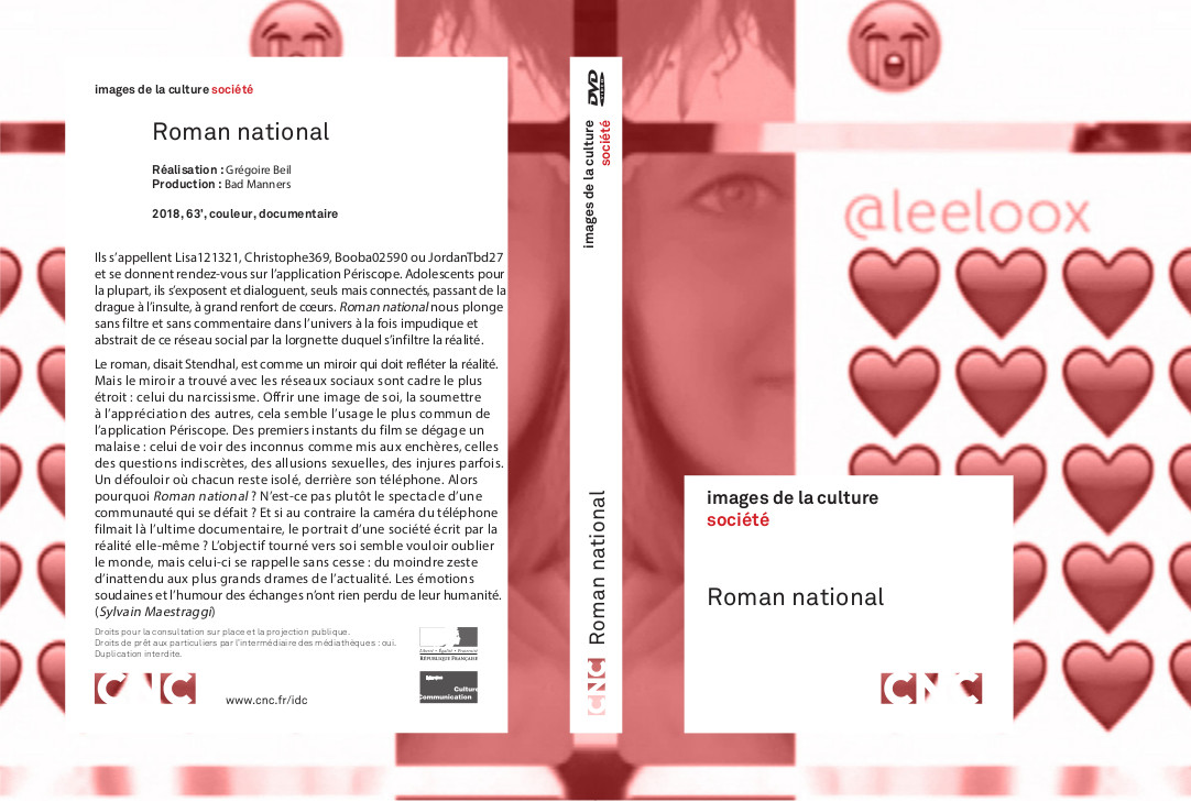 Ils s’appellent Lisa121321, Christophe369, Booba02590 ou JordanTbd27 et se donnent rendez-vous sur l’application Périscope. Adolescents pour la plupart, ils s’exposent et dialoguent, seuls mais connectés, passant de la drague à l’insulte, à grand renfort de cœurs. Roman national nous plonge sans filtre et sans commentaire dans l’univers à la fois impudique et abstrait de ce réseau social par le prisme duquel s’infiltre la réalité.