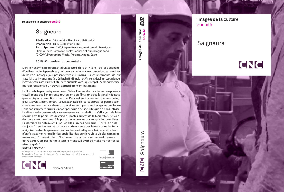 Dans le vacarme assourdissant d’un abattoir d’Ille-et-Vilaine - où les bouchons d'oreilles sont indispensables -, des ouvriers dépècent avec dextérité des centaines de bêtes qui chaque jour passent entre leurs mains. Sur les lieux mêmes de leur travail, ils se livrent sans fard à Raphaël Girardot et Vincent Gaullier. La cadence infernale et les gestes répétitifs usent autant le corps que l'esprit ; Saigneurs scrute les répercussions d'un travail particulièrement harassant.