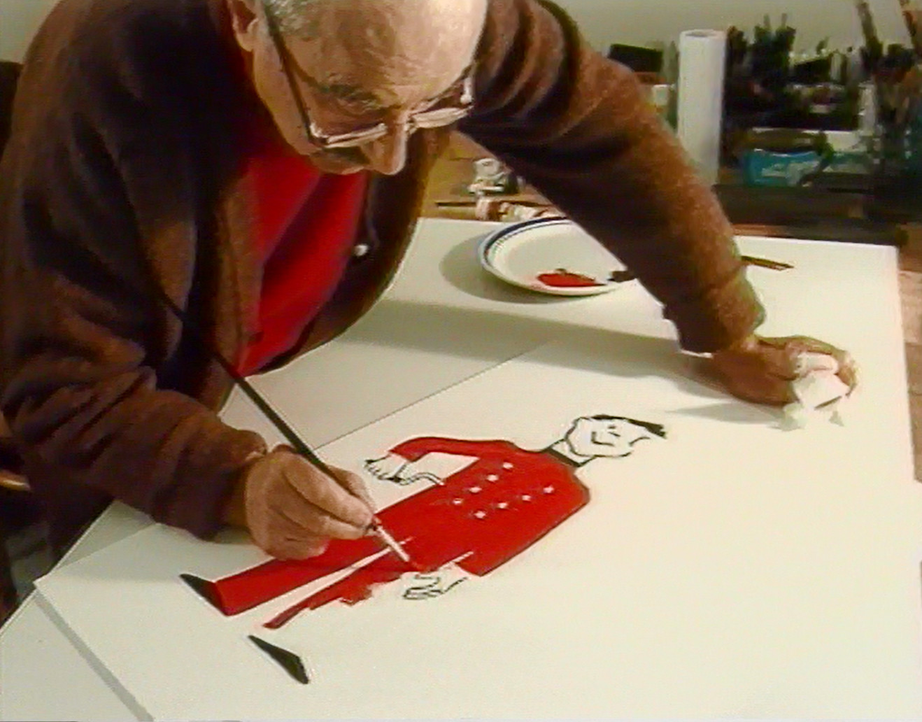 Qui ne connaît la célèbre affiche de la vache pour Monsavon au lait ? Entre une partie d'échecs avec Sempé et une promenade à Trouville, sur une musique guillerette de Maurice Baquet, Savignac (1907-2002) réalise sous nos yeux un projet d'affiche d'une clarté "pédagogique". Sur un ton bon enfant, les réalisatrices dressent le portrait d'un grand affichiste dans la lignée des Cassandre, Colin et Carlu. Alors que Savignac dessine un groom rouge pour les Archives de la publicité, défilent quelques-unes de ses affiches les plus connues, toutes en aplats de couleurs vives : le bonhomme avec des voitures qui traversent son crâne pour Aspro, celui avec une grosse tête en forme de bille pour Bic, le quartier de boeuf et la soupière en forme de poule pour le pot-au-feu Maggi, etc.