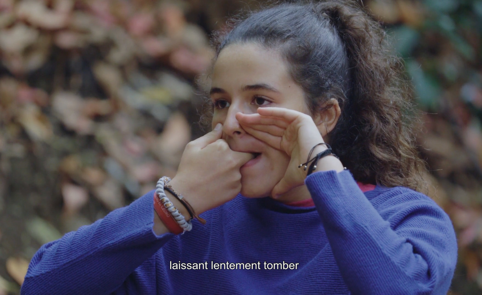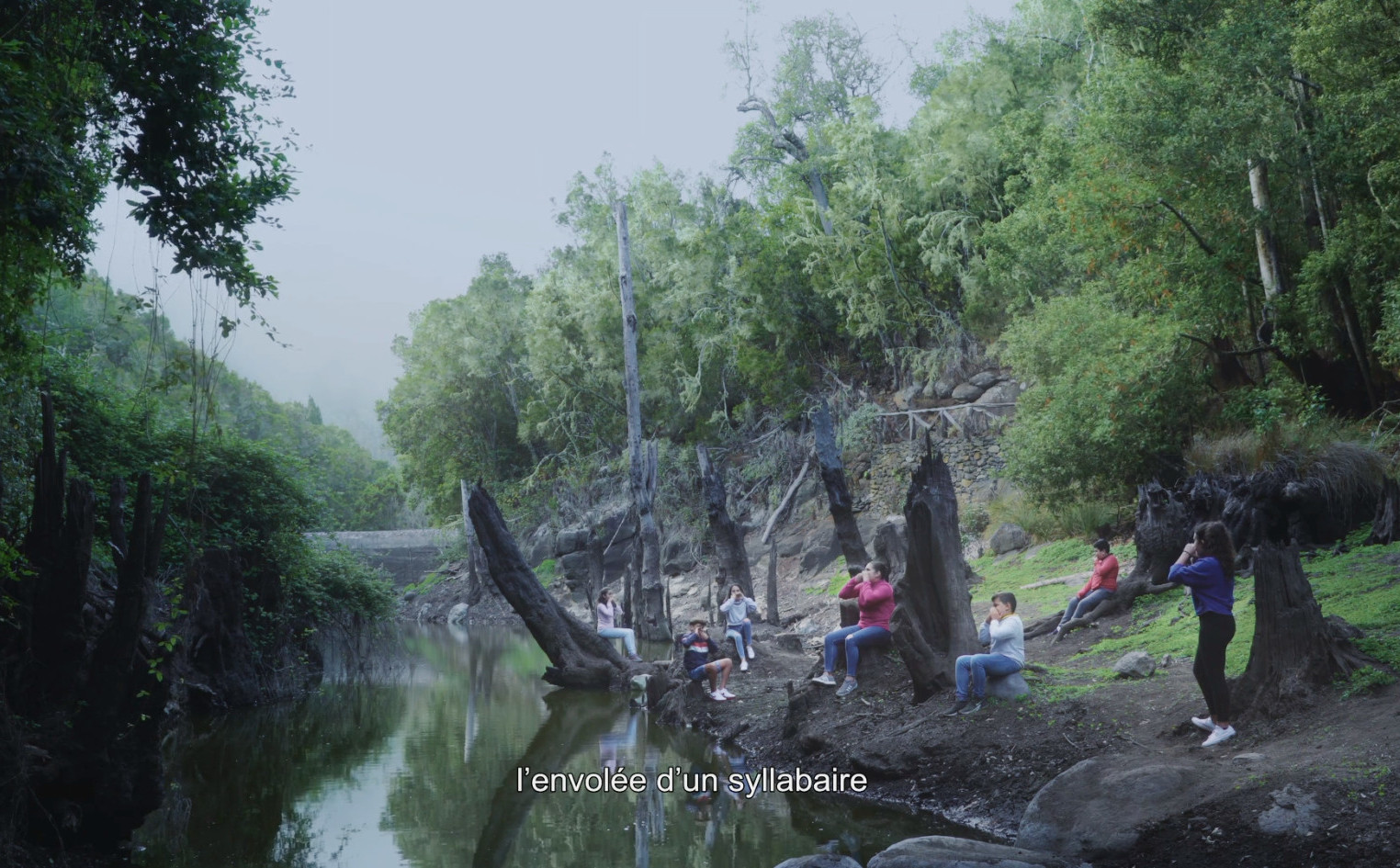"Je ne sais pas ce dont je rêvais, mais l'arbre ouvrait de multiples mains, laissant lentement tomber un peu d'eau, un fruit de saison, l'envolée d'un syllabaire d'oiseaux autochtones." Sur des nuages dévalant les montagnes au coucher du soleil, la voix du poète Miguel Angel Feria nous fait entendre l'un de ses textes extrait de son recueil Anarcadia (2018). Cette ode aux éléments, au ciel et à la terre des origines, au langage, des jeunes gens en reprennent ensuite des parties en les sifflant. Marine de Contes les met en scène au sommet des montagnes ou au coeur de la forêt, ouvrant chaque plan sur une nature luxuriante ou des paysages insulaires grandioses. Après Les Proies (2018), son précédent film qui narrait déjà d'étranges rituels entre humains et oiseaux, Silabario compose un songe louant un éden pastoral où le langage sifflé se transmet de génération en génération.
