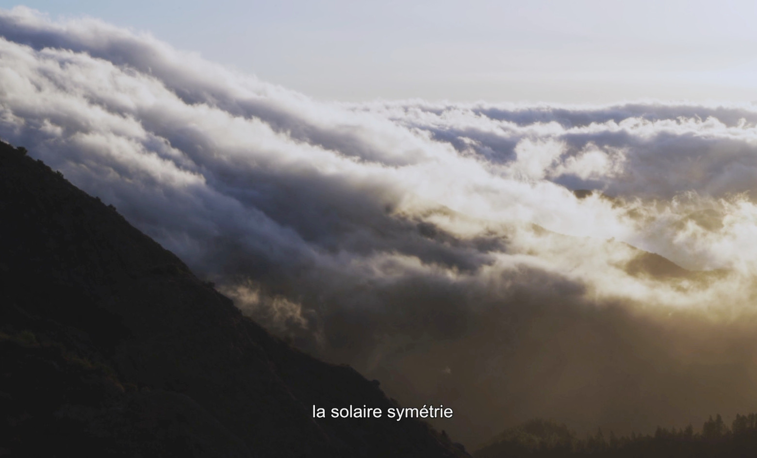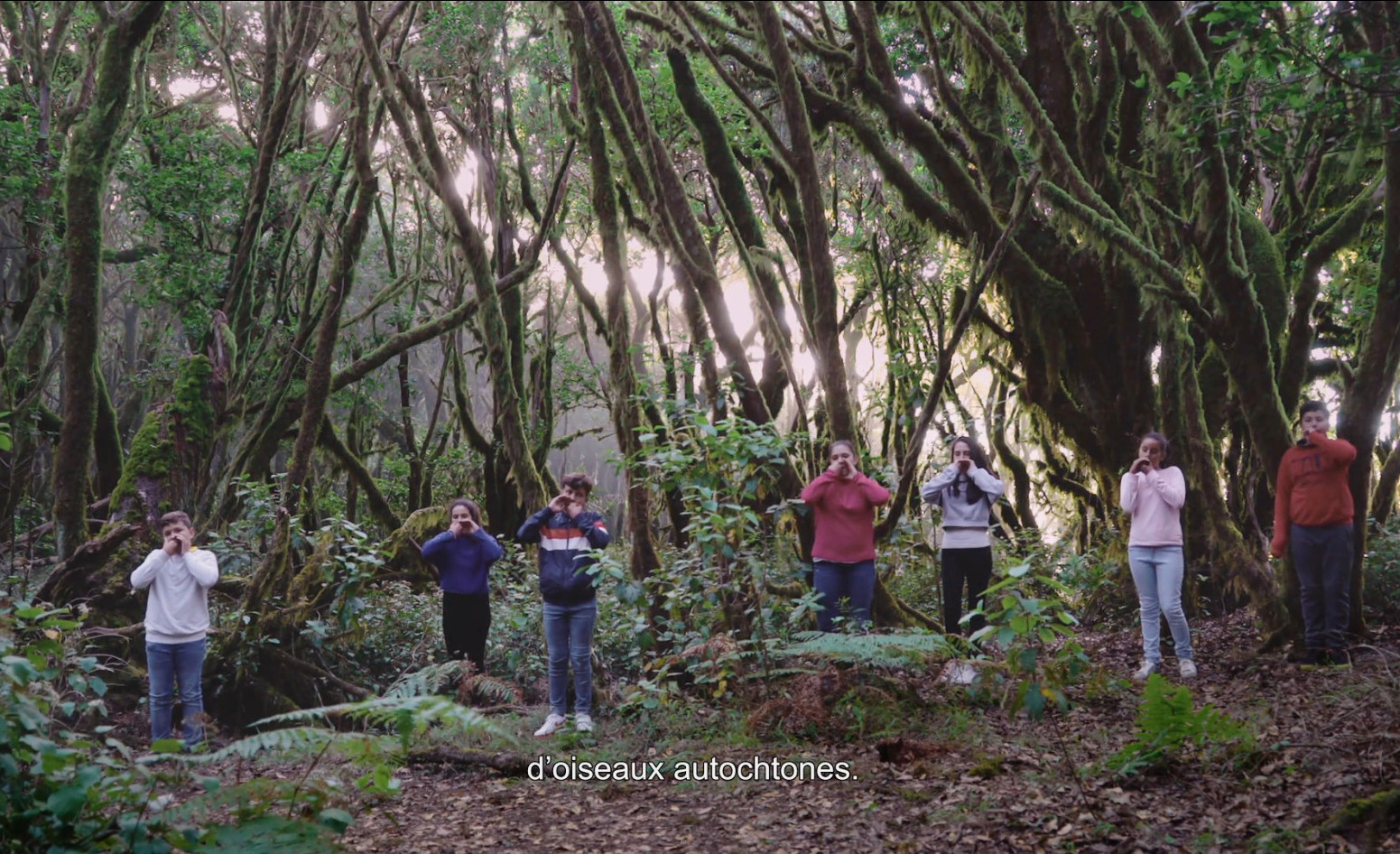 La Gomera abrite une forêt de l’ère tertiaire bercée par les alizés ; elle est aussi l’écrin d’un langage sifflé, une langue-miroir, le silbo gomero, dont l’origine remonte aux premiers habitants préhispaniques, les Guanches. Le silbo aurait disparu sans la ténacité de quelques octogénaires locaux. Enseignée depuis 1999, obligatoire au bac, cette langue sifflée est inscrite au patrimoine culturel immatériel de l’humanité depuis 2009. Le film, non didactique, nous convie à une expérience sensible. Que sont ces échos de chants d’oiseaux ? Le trouble s’immisce. Les visages, les bouches et les corps de silbadores de toutes générations apparaissent à l’écran ainsi que les vers de Miguel Angel Feria, poète ami de la réalisatrice. La bande son résonne des sifflements de cette langue étrange. Le rêve des anciens de pérenniser ce langage millénaire s’est réalisé. Les sifflements du silbo se transmettent de l’un à l’autre, naviguent, voyagent à travers la forêt, se réverbèrent sur les pentes brumeuses du volcan de la Gomera.
