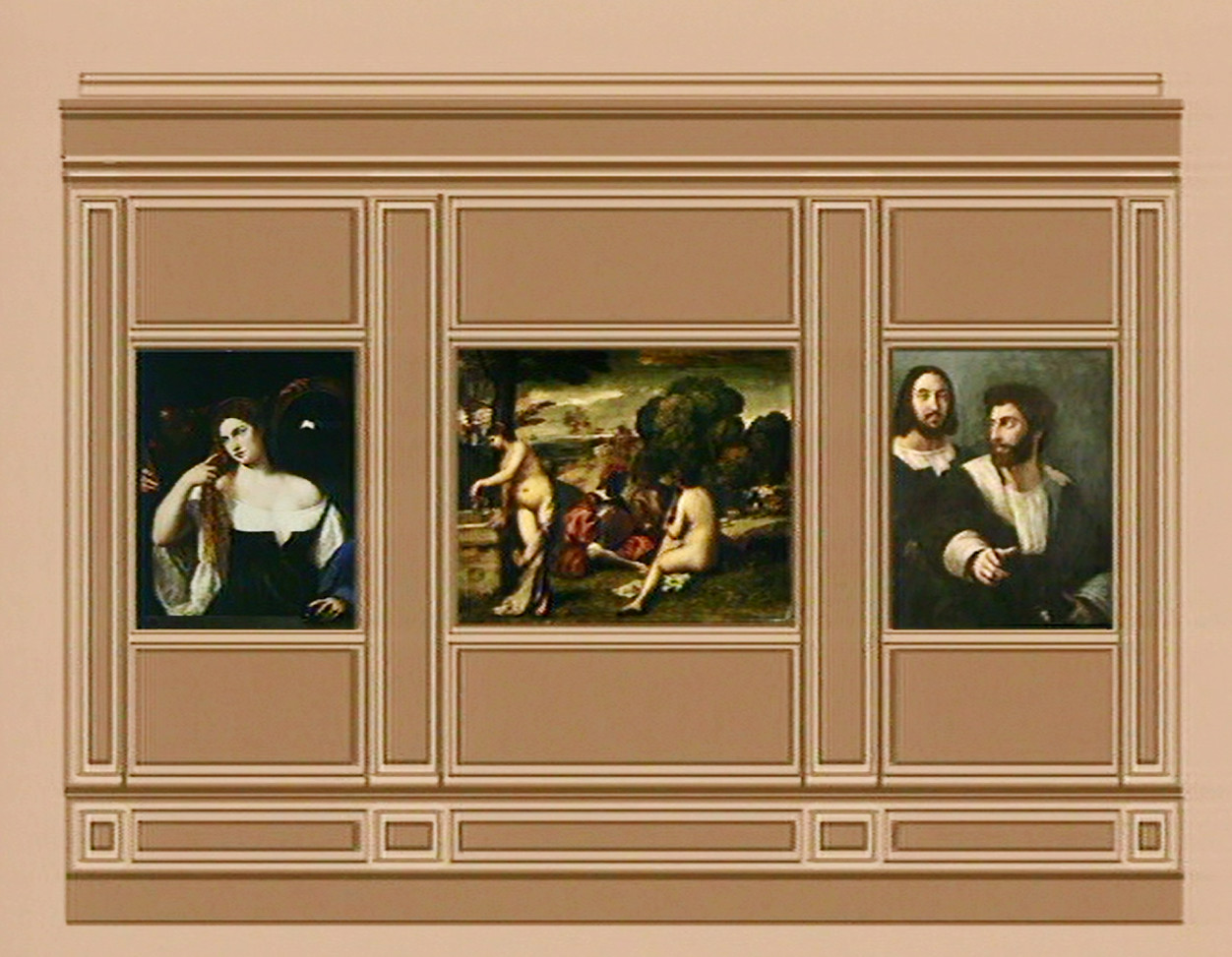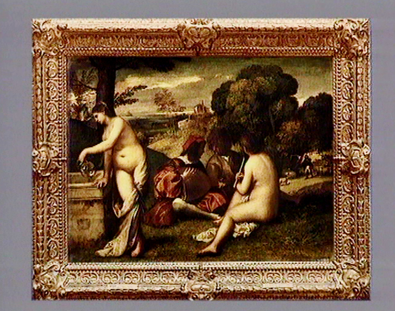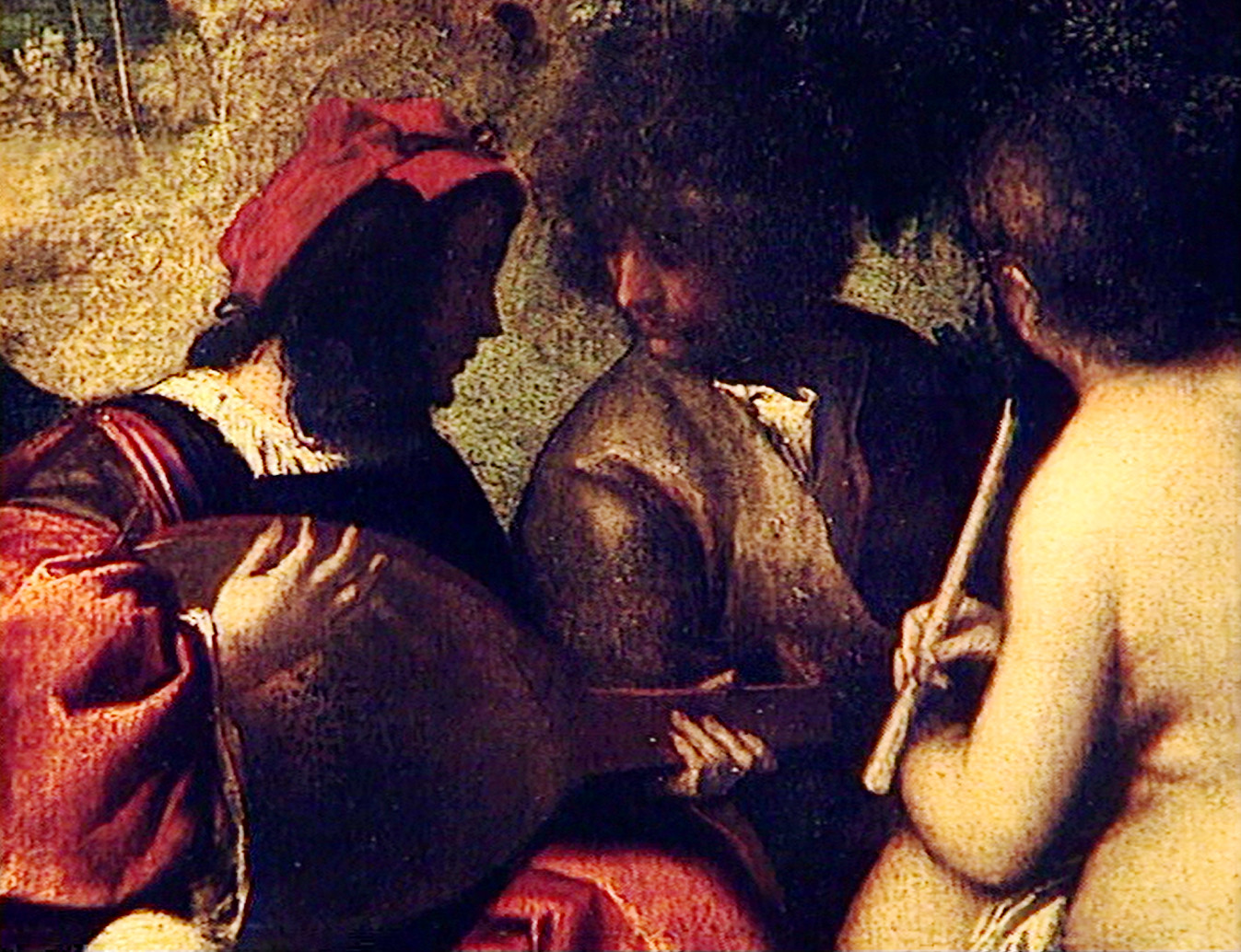 Les procédés picturaux sont bien connus. En ce début de XVIe siècle, en bon Vénitien d’adoption, le peintre préfère la toile au panneau. Il excelle dans l’art des glacis, superposant presque à l’infini les couches colorées translucides pour conférer une subtile luminosité aux pigments. Mais qui est ce peintre ? On a longtemps pensé à Giorgione pour cette méditation pastorale, mais la présence de motifs chers à Titien a fini par convaincre qu'il en était bien l’auteur. L’iconographie est plus floue : si la flûtiste et la verseuse d’eau sont des nymphes, et si le berger et le joueur de luth renvoient au monde bucolique de Virgile, s’agit-il d’une allégorie de la poésie ou bien de l’illustration d’un des best seller des débuts de l’imprimerie, L’Arcadia de Sannazaro ? L’atmosphère est, de fait, celle du retour à un âge d’or idéal, favorable aux amours raffinées et aux arts dans une nature propice, proche de ce que recherchent alors quelques humanistes dans les montagnes de Vénétie.