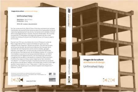 Ouvrant son film sur une citation du livre Le Temps en ruines de Marc Augé, Benoit Felici traduit d’emblée son goût pour les métaphores du fragment. Devant sa caméra, une série de projets ambitieux lancés par des politiciens désireux de marquer leurs mandats de ces imposantes constructions (stades, garages, hôpitaux, barrages, etc.) ne sont plus de simples architectures vernaculaires mais deviennent de véritables utopies. En ruines ou incomplètes (une piscine olympique abandonnée pour un mètre manquant aux 50 réglementaires), ces architectures sollicitent l’imaginaire et les désirs individuels ou collectifs. Elles racontent l’histoire d’un pays où chacun peut s’approprier leur caractère "en devenir", à l'instar du projet L’Incompiuto siciliano qui propose de les faire vivre de façon inédite. Unfinished Italy invite à s’interroger : quelles traces laissons-nous ? Que reste-t-il des lieux que nous arpentons, des objets que nous utilisons après notre disparition ?