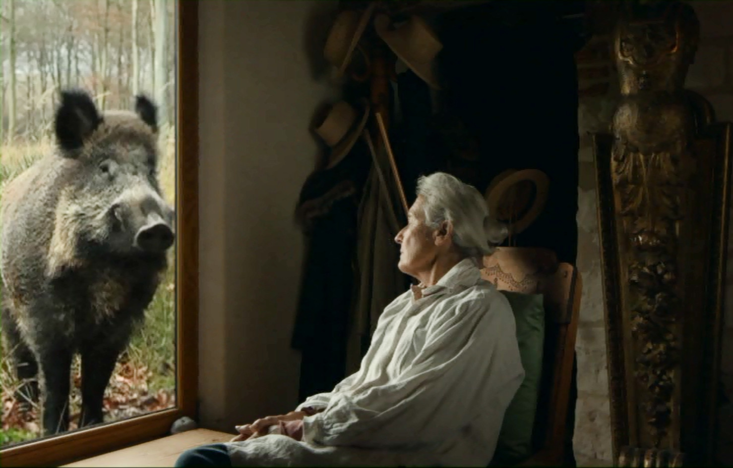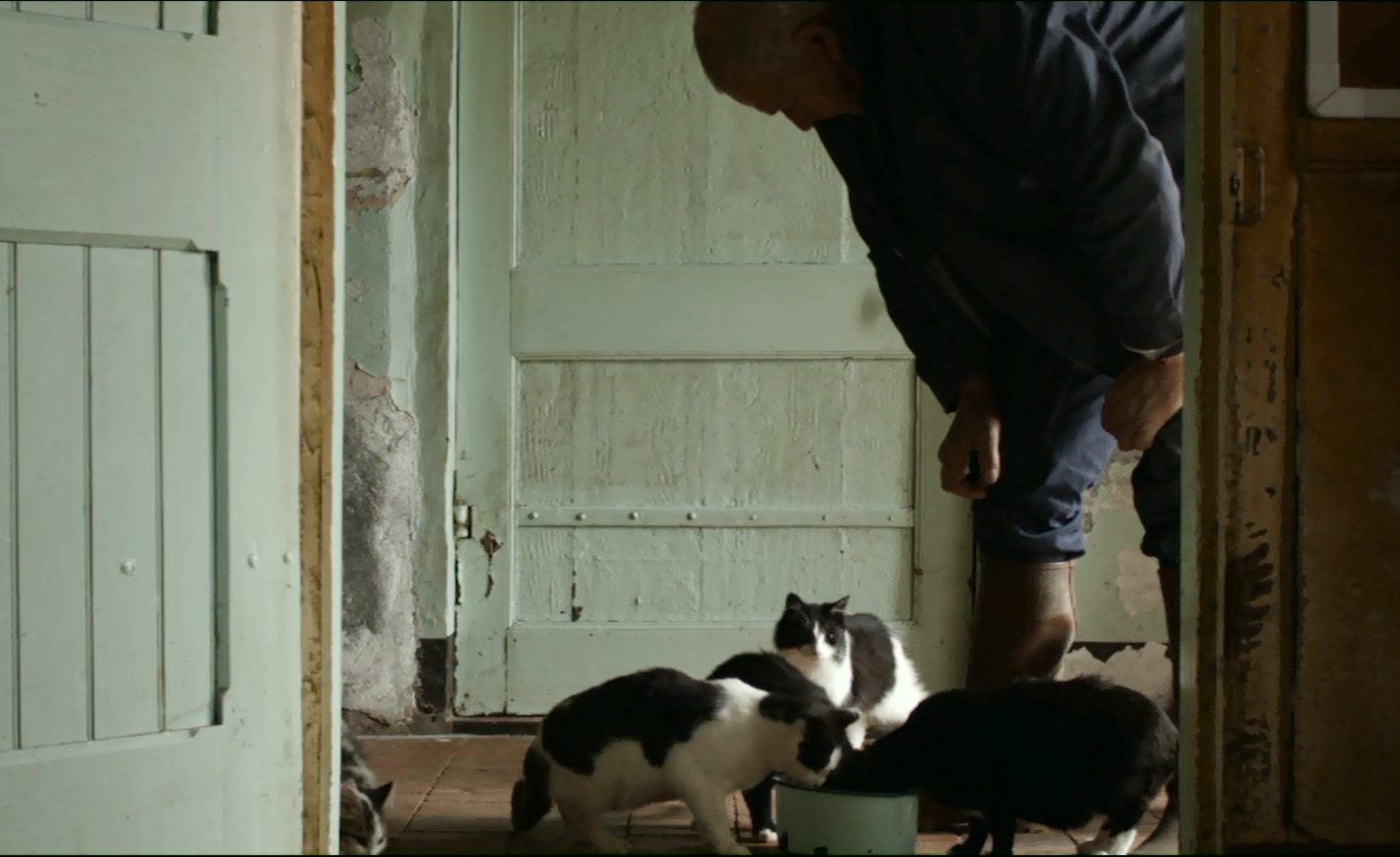 Pierre Creton, ouvrier agricole et cinéaste, a dès son premier long métrage interrogé la relation entre l’homme et l’animal (Secteur 545, 2006). Si la Normandie rurale où il vit et travaille semble se prêter à l’exploration de la question, elle n’acquiert pas pour autant une plus grande évidence. Au milieu des fermes et des champs, parmi les éleveurs et les chasseurs, la présence animale reste empreinte de mystère. Qu’un animal échappé de la forêt trouve le gîte dans la maison d’une vieille dame, alors que les vaches restent à l’étable et les poules dans la basse-cour, voilà qui fait événement. Mais ce mystère en appel un autre : celui de la rencontre. En Inde, Vincent, le compagnon de Pierre, rencontre un psychanalyste qui le guérit de sa peur des singes. Pierre se lie d’amitié avec un paysan qui nourrit des chats. Autour des animaux, de leur regard, de leur silence, des affinités se tissent, la vie s’égaie, retrouve sa pulsation, aussi sûre et vigoureuse que la gambade d’un marcassin.