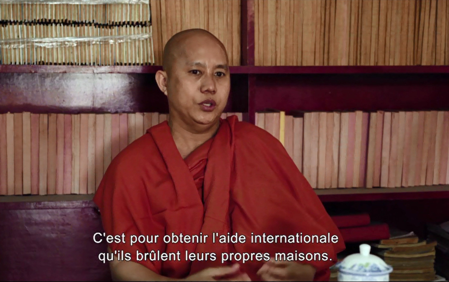 À travers de nombreux entretiens, Barbet Schroeder expose de manière frontale la parole du leader et de ses disciples, sans jugement ni commentaire, afin de montrer la dichotomie entre les préceptes du bouddhisme (prônant un pacifisme universel) et ceux d’Ashin Wirathu (incitant à la haine des minorités musulmanes). La méthode documentaire du cinéaste se rattache au concept de "banalité du mal", théorisé par Hannah Arendt lors des procès Eichmann, qui démontre par un examen du quotidien (actes, récits) la trivialité (et l'efficacité) des systèmes répressifs. Des premiers prêches nationalistes de 1997 à l’instauration des lois discriminatoires dites "de protection de la race et de la religion" en 2015, le cinéaste témoigne de la systématisation et de la diffusion d’un fascisme banalisé, allant jusqu'au génocide, à l’encontre des Rohingyas. Le recours aux images d’archives, commentées par les médias et les ONG internationales, et les captations clandestines diffusées sur les réseaux sociaux complètent la démonstration.