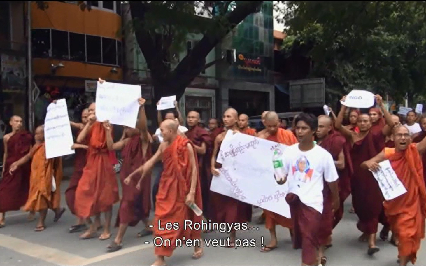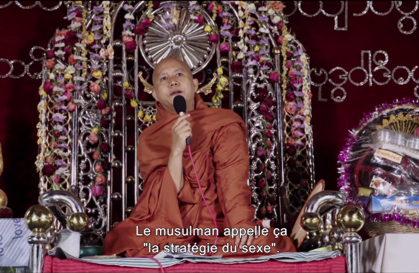 Wirathu est un moine bouddhiste. En Birmanie, c'est une personnalité publique dotée d'un charisme mêlant habileté politique et vénération religieuse. Barbet Schroeder est allé à sa rencontre et a réalisé un film inquiétant. Le bouddhisme n'est-il pas synonyme de paix ? L'images de ces bonzes habituellement pacifiques, se livrant à des actes de violences rares, tenant des discours qu'Hitler lui-même n'aurait pas renié, est bouleversante et met en évidence la capacité insidieuse que peuvent avoir les mots, les discours lorsqu'ils sont au service de la haine et de l'intolérance. Wirathu, ce vénérable W. s'en prend aux Rohingyas (des musulmans) : son discours de hain et connu et documenté. Il leur dénie toute humanité justifiant ainsi son éviction de l'espace public et sa persécution. Le portrait de cet homme machiavélique et raciste est sobre et froid. Barbet Schroeder le laisse parler, mêlant images d'archives et entretiens. La voix off de Bulle Ogier, apporte des contrepoints sur les préceptes de Buddha ou renseigne sur des aspects contextuels. Analyse et jugement sont laissés au soin du spectateur censé se faire une opinion. Un film frisson, d'une désespérance immense et pourtant indispensable à la compréhension de notre monde et des travers de l'humanité.