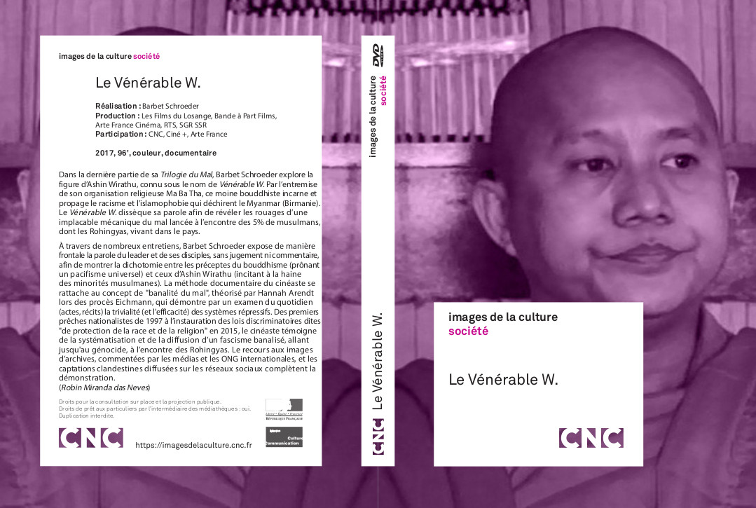 Dans la dernière partie de sa Trilogie du Mal, Barbet Schroeder explore la figure d’Ashin Wirathu, connu sous le nom de Vénérable W.. Par l’entremise de son organisation religieuse Ma Ba Tha, ce moine bouddhiste incarne et propage le racisme et l’islamophobie qui déchirent le Myanmar (Birmanie). Le Vénérable W. dissèque sa parole afin de révéler les rouages d’une implacable mécanique du mal lancée à l’encontre des 5% de musulmans, dont les Rohingyas, vivant dans le pays.
