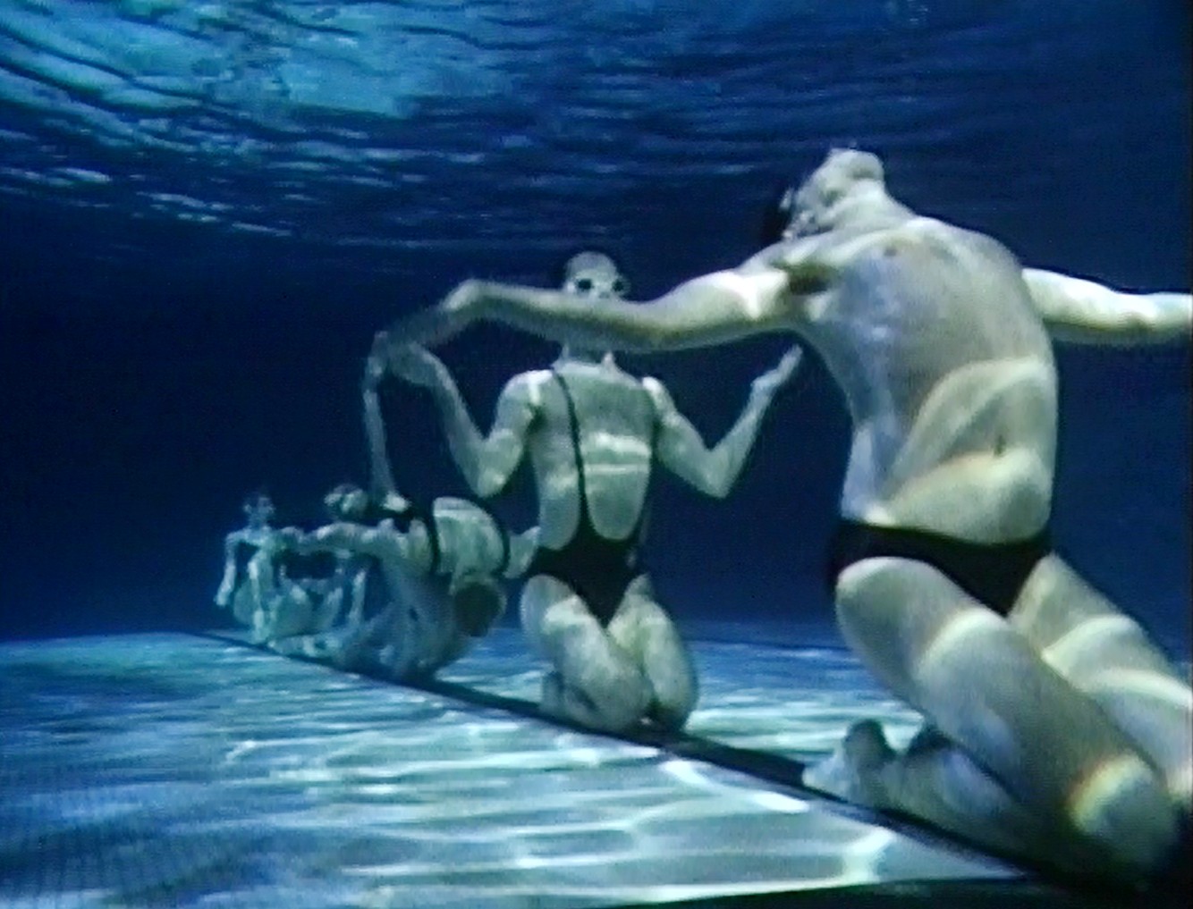 La lente marche d'un homme en imperméable au fond de la piscine où flottent des corps en apnée, les scènes saccadées d'immersion soudaine, le combat à la surface de l'eau de danseurs harnachés de bouées : certaines de ces images, réalisées pendant l'élaboration du spectacle aquatique de Daniel Larrieu, en mars 1986, étaient projetées sur écran au bord de la piscine et servaient de transition entre les scènes de cette pièce que la presse surnomma la Giselle de l'an 2000.