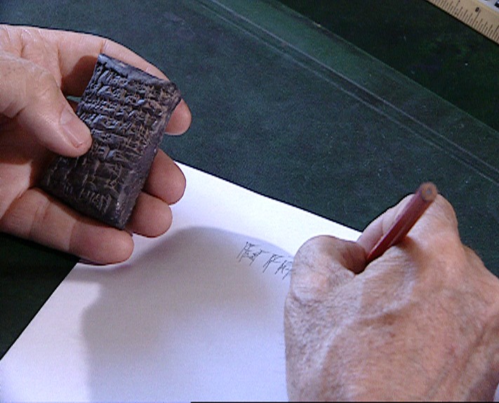 L’écriture cunéiforme (en forme de coin ou de clou) est née autour de 3200 avant notre ère en Mésopotamie, région située entre le Tigre et l’Euphrate à l’emplacement de l’Irak actuel. Elle n'est déchiffrée qu’en 1802, par l’Allemand Georg Friedrich Grotefend, à partir d’éléments stables permettant d’isoler quelques lettres, comme le nom des rois perses connus des Grecs. Aide-mémoire, plus que moyen d’expression, l’écriture est à son origine l’instrument des comptables et des marchands, mais réservée au scribe seul, qui en a fait son métier. Décryptées, les tablettes ont enrichi l'image de la civilisation mésopotamienne. Ses valeurs, sa science, sa poésie, son art de vivre ont peu à peu été révélés : le code d’Hammourabi nous a transmis le droit, l’épopée de Gilgamesh, les mythes et le sentiment du beau... Et même des recettes de cuisine, dont l'une que le chef Guy Savoy a concoctée pour le film dans son restaurant et que l'on voit Jean Bottéro déguster.