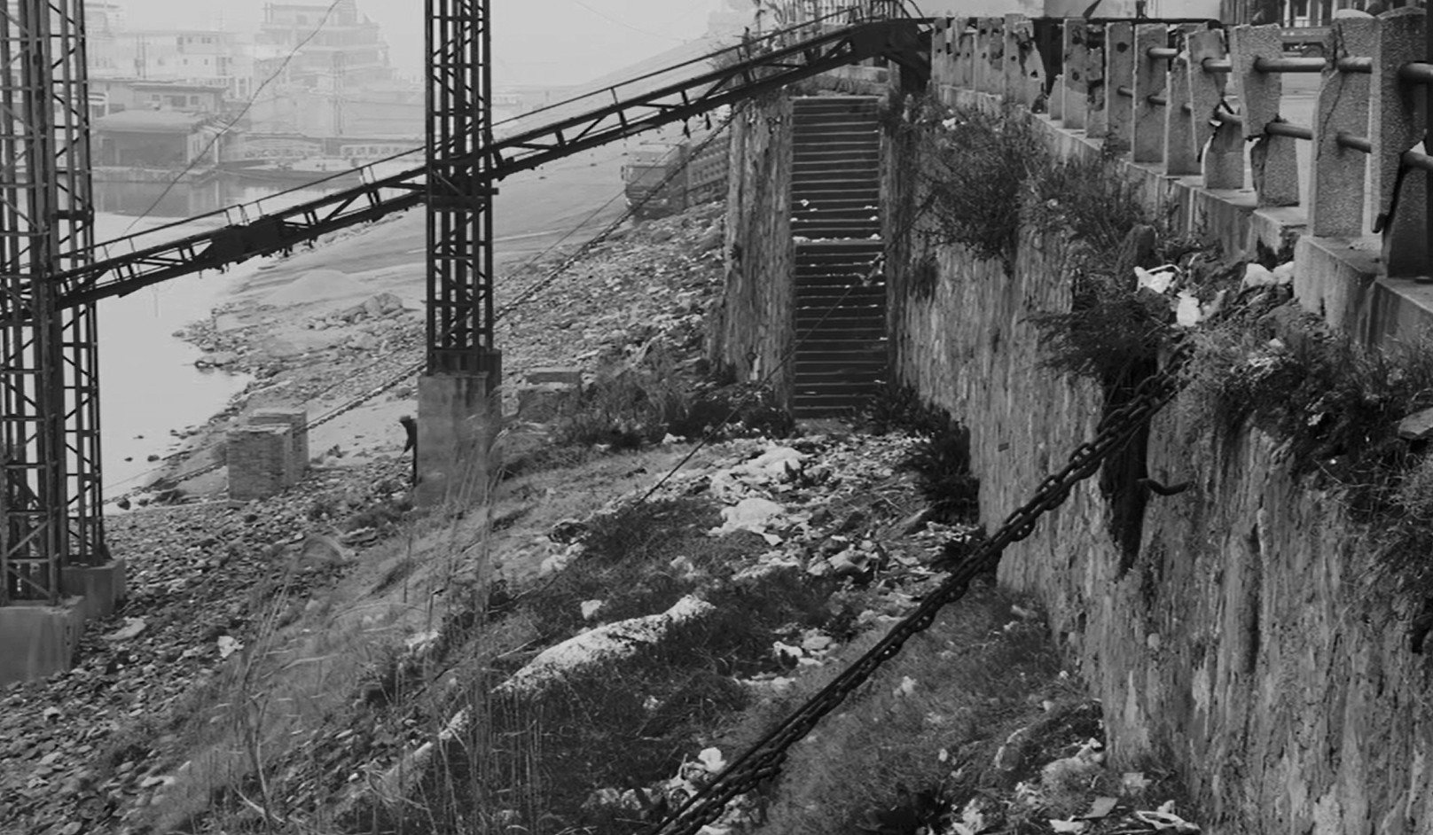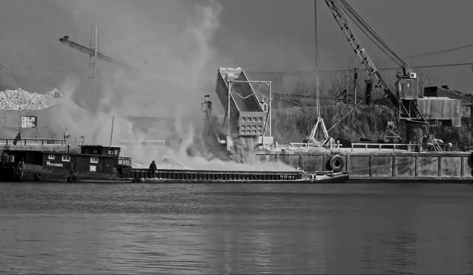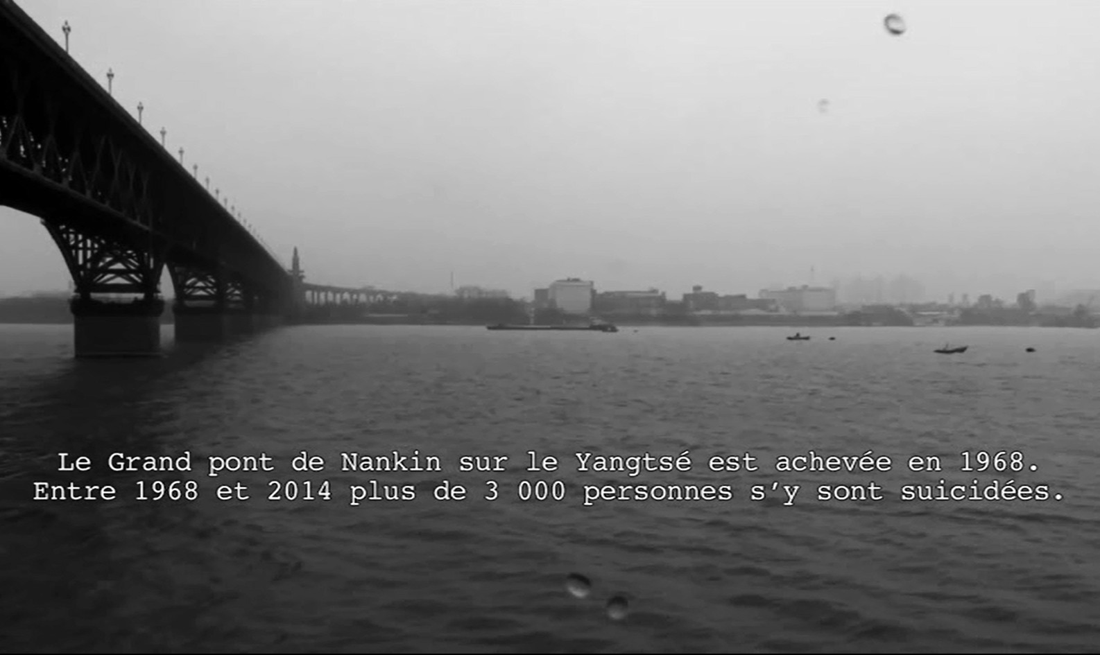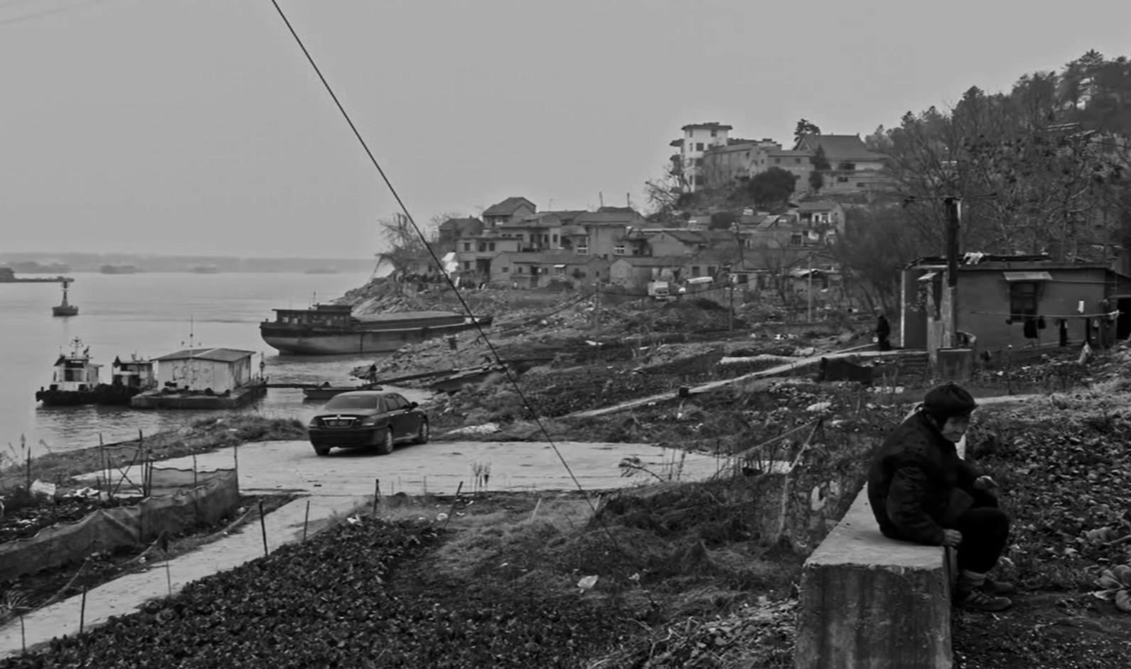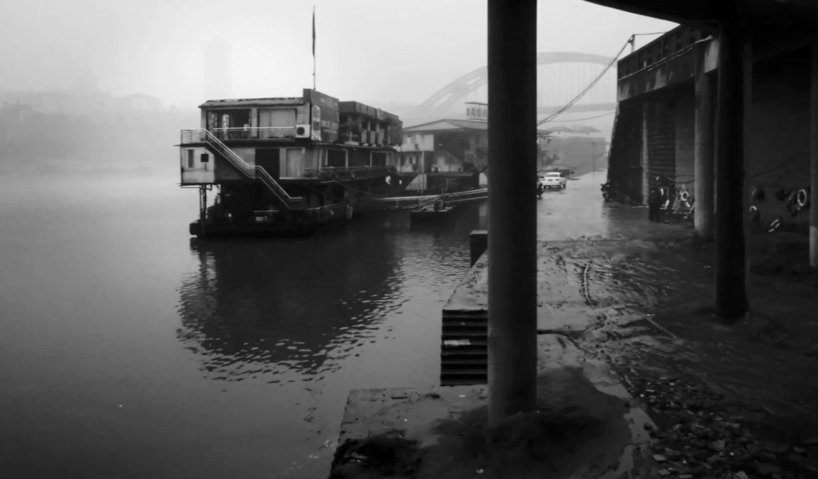 C’est au Désert rouge d'Antonioni que l’on songe également en regardant A Yangtze Landscape. Xu Xin, lui, a choisi le noir et blanc pour rendre le paysage lugubre des rives du fleuve. Le réalisateur embarque sur un navire dans la nuit illuminée du port de Shanghai pour remonter lentement jusqu’aux confins du Tibet. Régulièrement des sous-titres rappellent de macabres incidents survenus sur le Yang-Tsé au cours des récentes années. Le fleuve modifié par la construction du barrage des Trois-Gorges, dont on passe les gigantesques écluses, et par le projet de dérivation vers le nord, est parsemé de villes fantômes et de villes nouvelles surgies au-dessus des anciennes englouties par les eaux. Dans des abris de fortune, parmi les ruines ou sous d’imposantes corniches, gîtent d’étranges ombres, tandis que dans les centres-villes des citoyens ahuris dansent sous des écrans géants : "Cent mille recrues dans la police militaire" ; "Les minorités tibétaines fêtent joyeusement le nouvel an"...