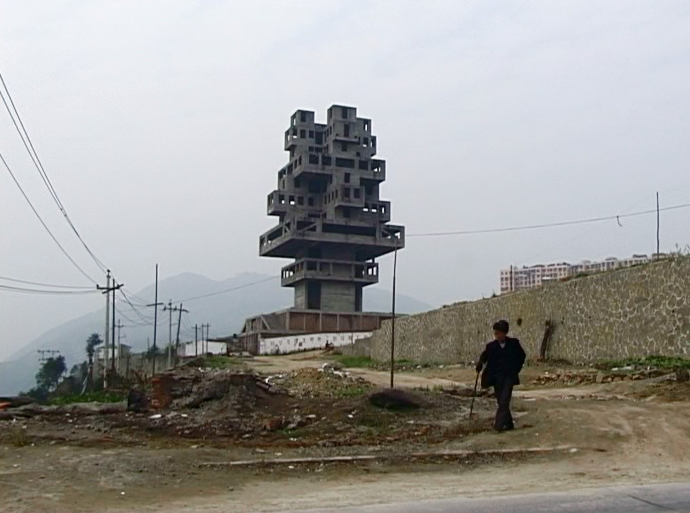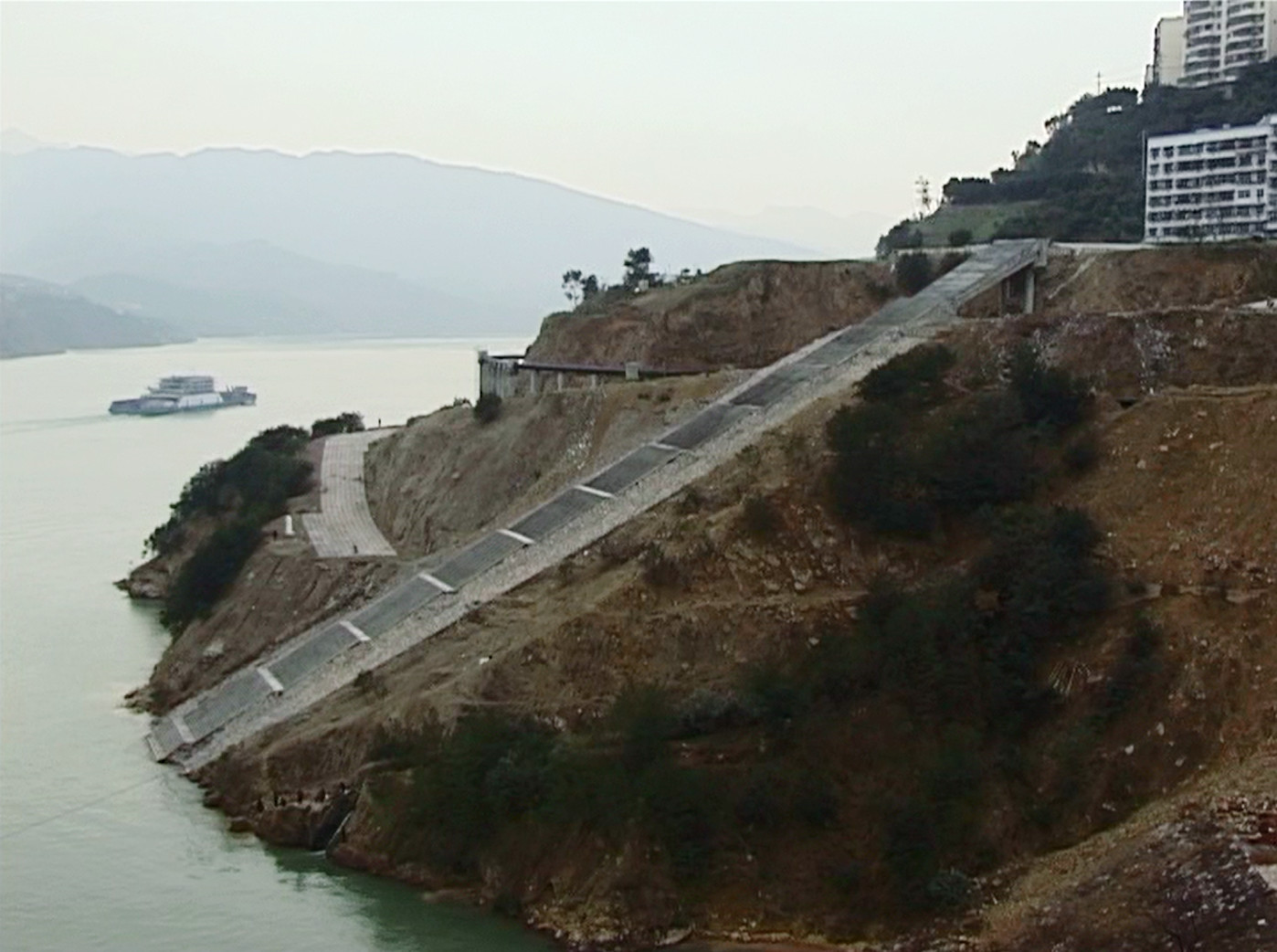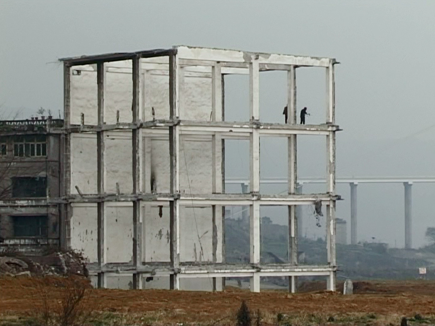 Chine, barrage des Trois-Gorges : son chantier démesuré, son millier d’hectares inondés, ses 2000 villes et villages engloutis, qu’une voix de speakerine énumère au long du film. Ou bien les voix préenregistrées diffusées sur les sites touristiques, anticipant l’achèvement du barrage, nous en délivrent-elles l’historique glorieux : vaine enjolivure sur ces paysages à la fois défigurés et saisissants.