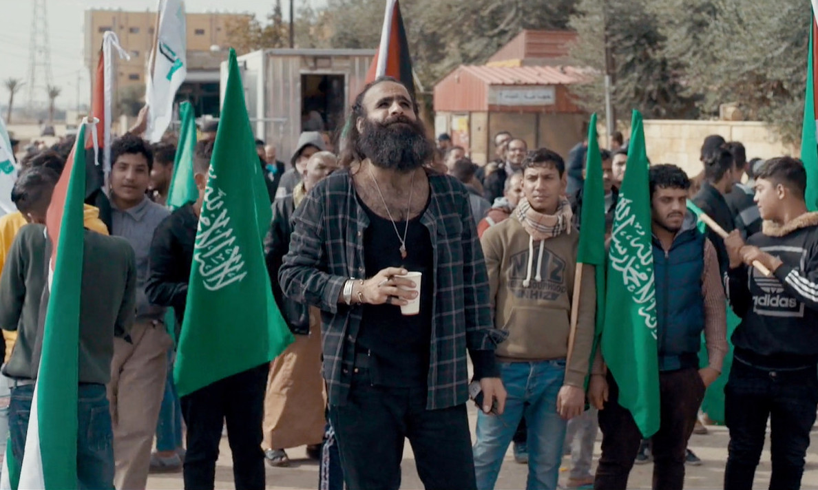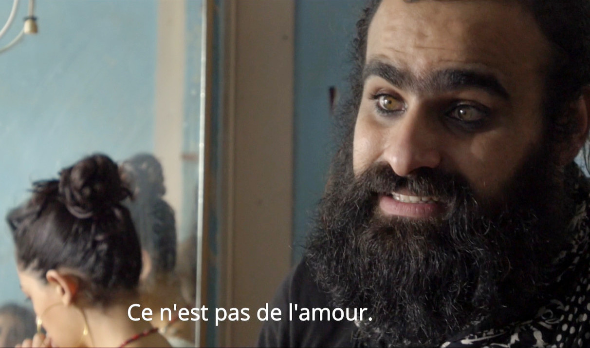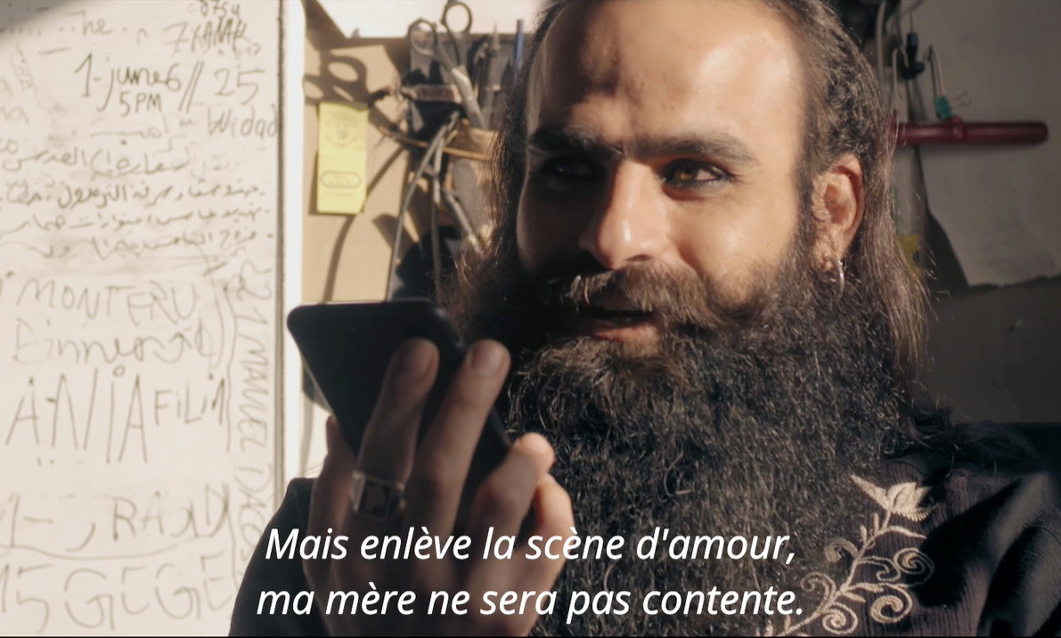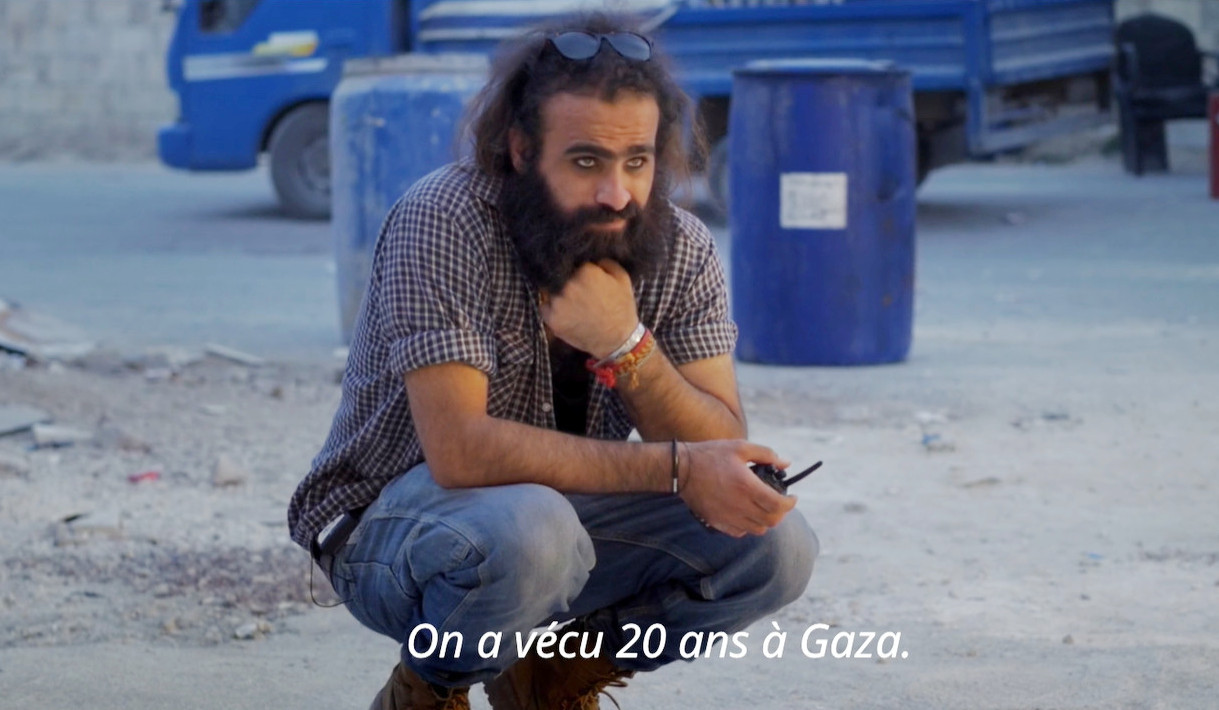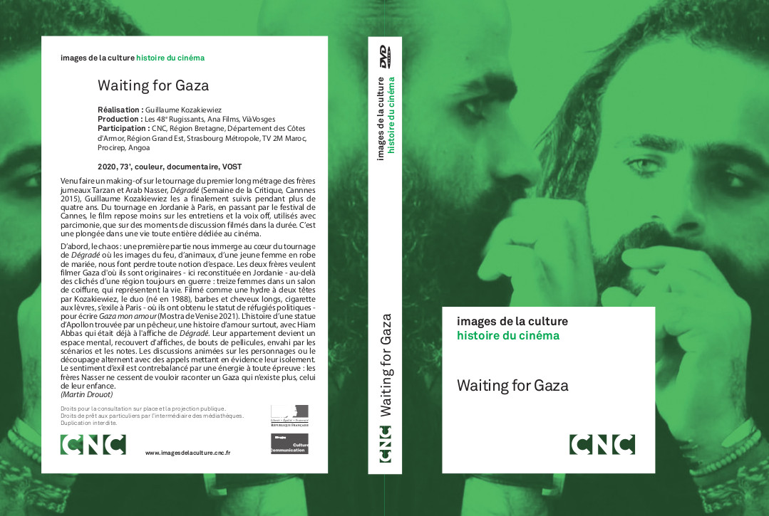 D’abord, le chaos : une première partie nous immerge au cœur du tournage de Dégradé où les images du feu, d’animaux, d’une jeune femme en robe de mariée, nous font perdre toute notion d’espace. Les deux frères veulent filmer Gaza d'où ils sont originaires - ici reconstituée en Jordanie - au-delà des clichés d’une région toujours en guerre : treize femmes dans un salon de coiffure, qui représentent la vie. Filmé comme une hydre à deux têtes par Kozakiewiez, le duo (né en 1988), barbes et cheveux longs, cigarette aux lèvres, s’exile à Paris - où ils ont obtenu le statut de réfugiés politiques - pour écrire Gaza mon amour (Mostra de Venise 2021). L'histoire d’une statue d’Apollon trouvée par un pêcheur, une histoire d’amour surtout, avec Hiam Abbas qui était déjà à l'affiche de Dégradé. Leur appartement devient un espace mental, recouvert d’affiches, de bouts de pellicules, envahi par les scénarios et les notes. Les discussions animées sur les personnages ou le découpage alternent avec des appels mettant en évidence leur isolement. Le sentiment d’exil est contrebalancé par une énergie à toute épreuve : les frères Nasser ne cessent de vouloir raconter un Gaza qui n’existe plus, celui de leur enfance.