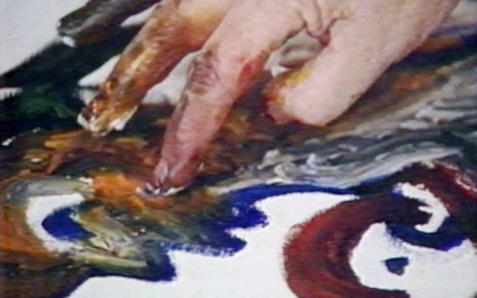 Puis, accroupie au sol, elle prend les tubes de peinture, les presse, en fait sortir des couleurs vives, travaille directement avec ses mains, ses doigts, sur une toile. La caméra accompagne ses gestes. On perçoit l’amour pour la matière et le contact avec la consistance de la peinture. Delphine Seyrig regarde, contemple cette frénésie créative, et avoue son trouble devant la “vraie” Mary Barnes, elle qui fut la “fausse” Aloïse.