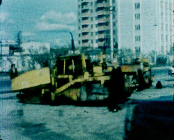 Hommage à Dziga Vertov, le film emprunte délibérément des chemins opposés à tout reportage, à tout discours expert. Les images trébuchantes, parfois scarifiées, aux couleurs délavées sont celles d’un voyage intérieur dans la mémoire communiste. La bobine n°1 retrace un trajet essentiellement ferroviaire entre Kiev et Moscou. À Tchernobyl, le cinéaste tente d’échapper au circuit payant destiné aux journalistes pressés. La bobine n°2, de Novossibirsk à Yakoutsk, suit les rails du transsibérien, puis le cours lent de la Léna. De longs plans fixes fracturés de trous noirs disent le vague à l’âme, l’attente du voyageur et peut-être celle d’un pays toujours en mal d’avenir radieux. Au fil des jours, bonheurs et déconvenues se succèdent, beuveries et errements. La dernière partie du périple (bobine n°3) est la plus éprouvante : 2000 kilomètres de piste improbable à travers les montagnes entre Yakoutsk et Magadan. Au terme de ce parcours poétique, la milice est là, qui remet brutalement les pendules à l’heure.