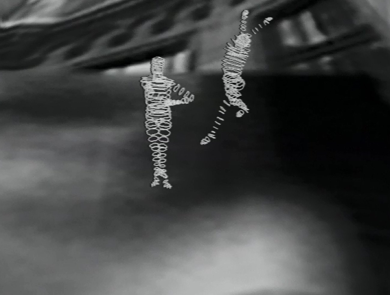 Dans cette fiction chorégraphique, la lumière tient sans conteste le rôle principal. Elle ramasse et déroule le grain de l'image, gonfle le noir et épaissit le blanc. Des danseurs émergent de ce décor virtuel et sont bientôt remplacés par des silhouettes obtenues grâce au logiciel Life Forms déjà utilisé par Merce Cunningham. Ce va et vient entre des images du réel et la déconstruction systématique d'environnements virtuels unit dans une perception commune le mouvement et la lumière.