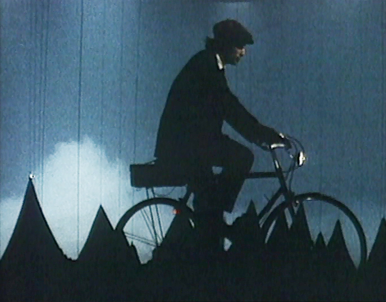 Samy Frey porte au théâtre Je me souviens de Georges Perec, recueil qui inventorie quatre cent quatre-vingt réminicences de la vie quotidienne, du show-business, du cinéma et du monde politique et sportif de l'après-guerre. Dans une scénographie de monts escarpés, suspendu dans les airs, l'acteur, sur un vélo fabuleux, dévide un vaste programme de mots qui sème la nostalgie d'une époque révolue.