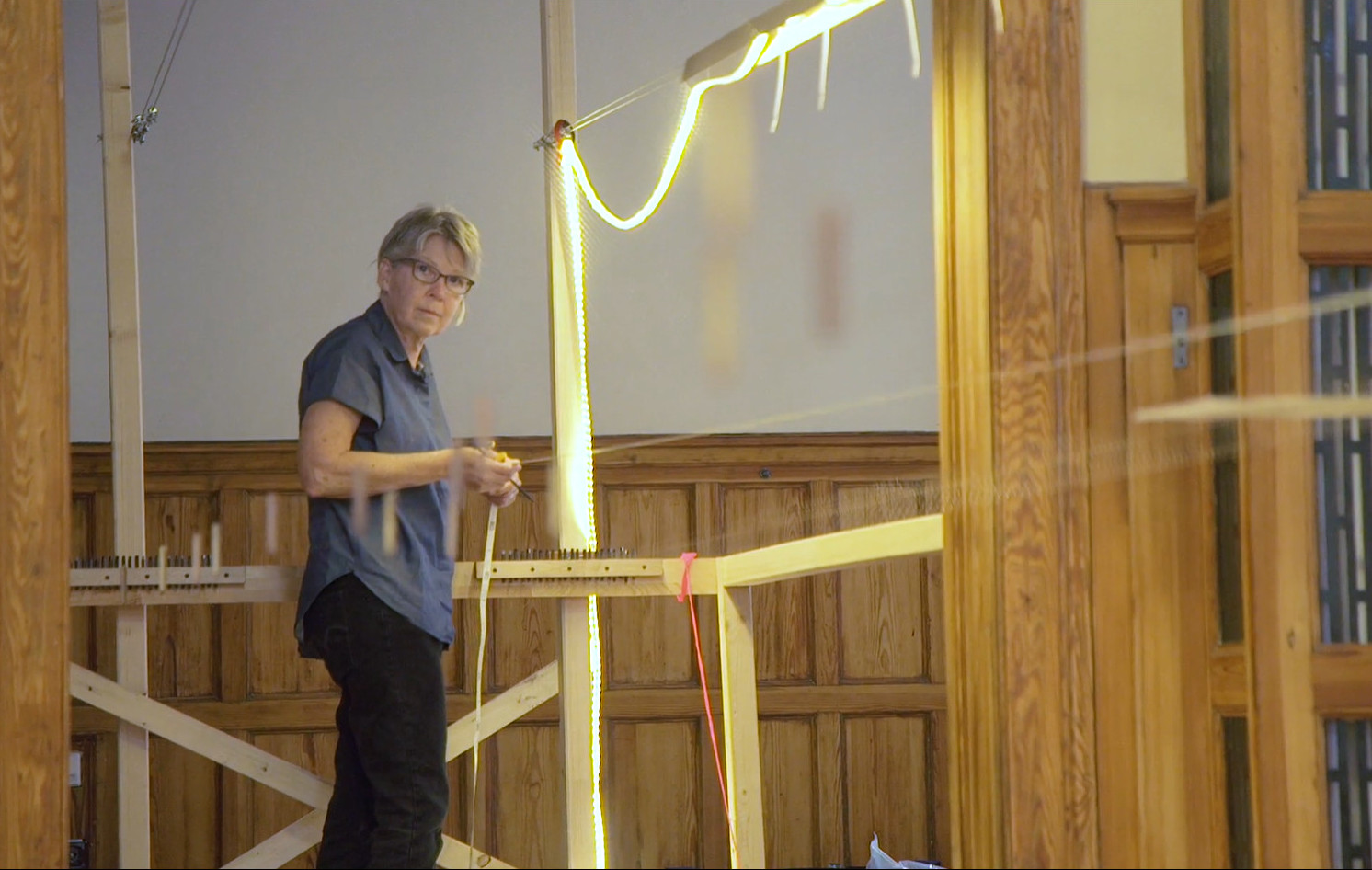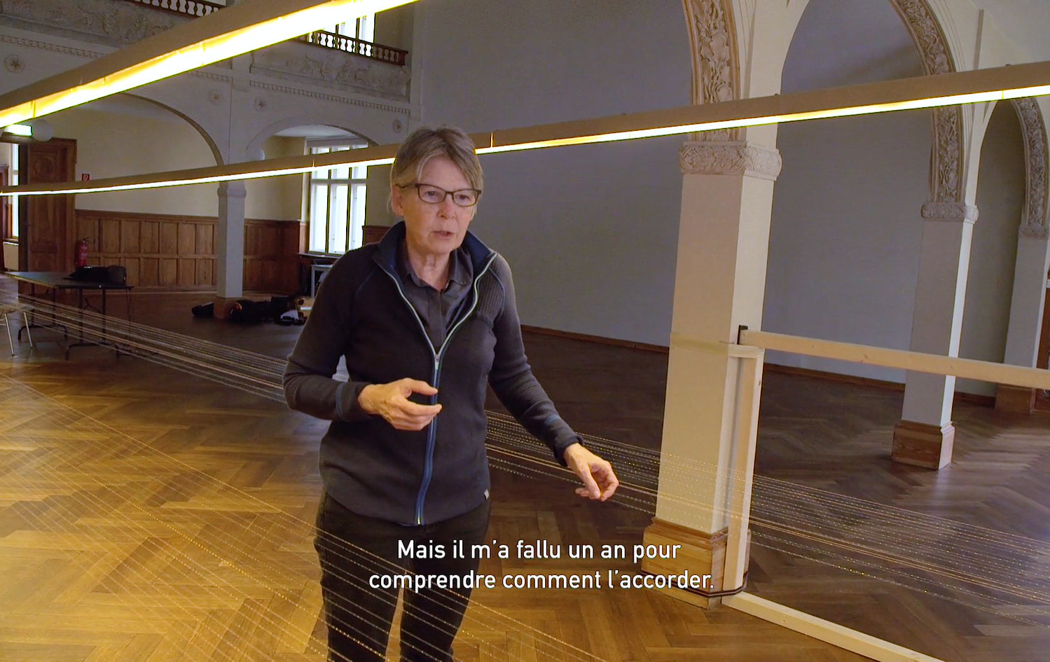 C'est l'instrument qui guide Walking with Ellen Fullman. Soit, the long string instrument (instrument à cordes longues), comme Ellen Fullman a elle-même sommairement nommé cette structure d’une douzaine de cordes minimum. Expliquant les rouages et les spécificités techniques de cet objet tout en longueur – dont les cordes peuvent dépasser les vingt mètres de long – et qu'il lui a fallu apprivoiser, Ellen Fullman fait plus que lever le voile sur les coulisses de sa pratique. Elle révèle ce qui sous-tend sa recherche artistique autant que son rapport à celle-ci : une quête chronophage et passionnée de la justesse et du son ; une exploration obsessionnelle du potentiel des cordes et de l’harmonie ; la mise en jeu stimulante des liens entre l’interprète et l’instrument ; ainsi que la manière dont ce dernier entre en résonance avec le public lors des concerts. Vibrant différemment selon le nombre et l'emplacement des spectateurs, the long string instrument offre une belle métaphore du rapport à l’art et, plus largement, à la vie, de l’artiste américaine.