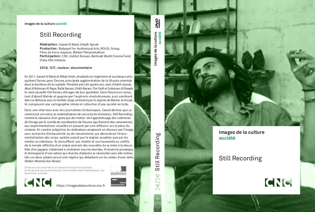 Faire des images, cela consiste à donner des nouvelles pour qui revient faire signe de loin en loin. Faire des images c'est aussi donner des preuves d'existence pour ceux qui à chaque instant reviennent de loin. « Video ergo sum » pourraient dire ces jeunes Syriens qui, habitant la ville de Douma dans la Ghouta orientale à vingt kilomètres de Damas, sont jetés depuis 2011 dans la guerre civile en y expérimentant la difficile possibilité d'en témoigner par des images qui disent « nous » sans s'empêcher de dire « je ». Le b.a.-ba du cinéma comme la vie s'apprend sous un ciel de plomb inversé à l'image d'un tapis de bombes. L'apprentissage balbutiant et persévérant d'un tissage d'images précaires est une rhapsodie aidant à soutenir l'existence en en rapiéçant les lambeaux. Still Recording émeut en s'exposant comme école théorique et pratique pour apprenants et enseignants amateurs qui apprennent et enseignent dans le même mouvement qui est celui du maître ignorant.