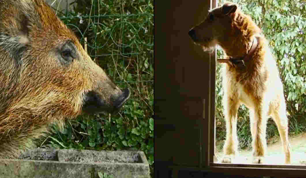 Au commencement était Toto. Madeleine lui donne le biberon, il gambade dans la cour en compagnie du chien de la maison, un vénérable terrier aux sourcils en bataille, parmi les oies et les poules. Pierre Creton monte ces séquences en split-screen : deux images côte à côte qui rappellent les pages d’un livre illustré pour enfants. Le cadre est souvent composée à hauteur d’animal et le dialogue des images tantôt renforce la dynamique de l’action, l’imprévisible vitalité du marcassin qui s’oppose à la placidité des oies, tantôt inscrit les aventures de Toto dans le plus vaste décor du village, Vattetot-sur-Mer, qui varie avec les saisons. Mais le split-screen vient aussi accentuer un paradoxe : tandis que Toto tête son biberon et dort dans le panier du chien, au chaud dans la cuisine, les poules piétinent dans la neige. Les voisins épient la vieille dame par la fenêtre. L’animal est-il bien à sa place ? N’y a-t-il pas une forme de transgression à passer ainsi du monde sauvage au monde humain ? L’atmosphère de conte qui règne chez Madeleine prend dans le village un parfum de scandale. Les premiers à s’en émouvoir ce sont les chasseurs, qui veulent maintenir l’homme et l’animal bien à leur place et menacent de venir abattre le marcassin. La loi même interdit que l’on garde chez soi un animal sauvage. Le geste de Madeleine enfreint l’ordre séculier de la campagne, où l’animal est soit domestique, soit relégué dans la forêt comme gibier. Qu’il déborde sur le monde humain, le voilà classé nuisible et menacé d’extermination.