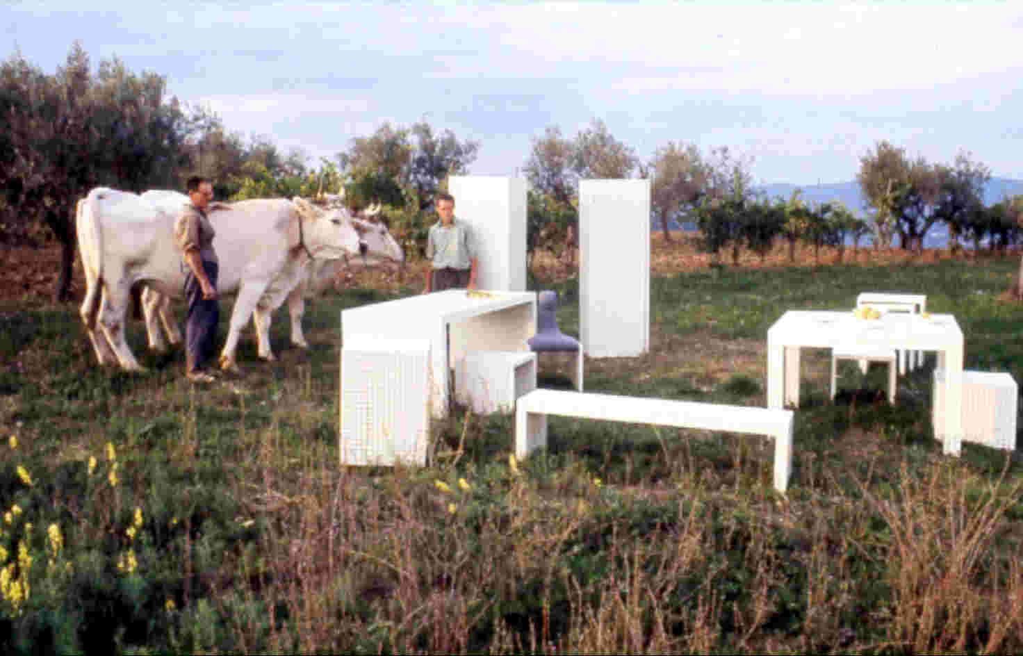A Florence œuvrent Archizoom et Superstudio. Différents et complémentaires, ces deux groupes ont marqué les esprits, avec non seulement des images et des films classés aujourd’hui œuvres d’art, mais avec un positionnement politique radical. Les images dystopiques intemporelles de Superstudio entraînent un monde en perdition dans une vision romantique et fantasmée. Leur concept de Monument continu est à la fois un rêve de monumentalité et d’idéal, et une critique incisive de la gangrénisation de la planète par l’architecture générique fermée de la ville expansive.