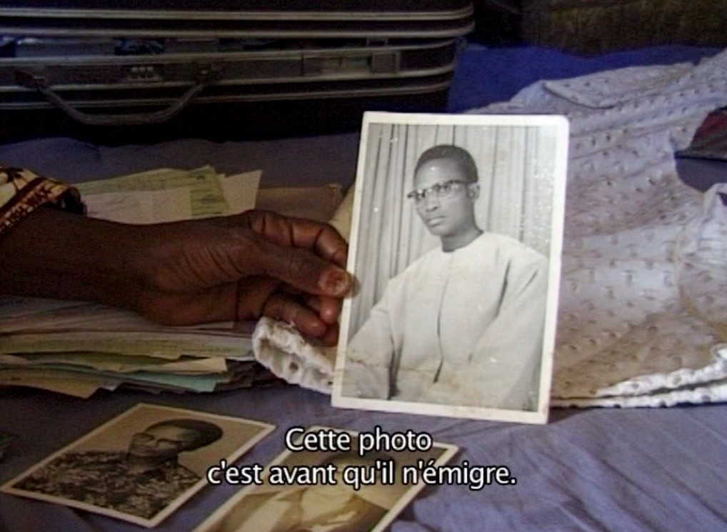 Premier film développé dans le cadre d’une résidence Africadoc à Saint-Louis du Sénégal, et réalisé en 2010, Les Larmes de l’émigration 1 se termine par une séquence dans laquelle, pour s’excuser de la fatigue et des efforts que ce tournage a exigés de sa mère, Alassane Diago le justifie ainsi : “Si tu me vois faire ce film c’est qu’il m’est indispensable. Il ira dans les archives, il représente la mémoire collective. Attendre vingt-quatre ans personne ne peut se le représenter.” Ainsi, inscrit-il ce premier geste dans une démarche que l’on peut rapprocher de celle des historiens qui ont contribué à faire émerger la micro-histoire à la fin des années 1980, dans le sillage des travaux de Carlo Ginzburg qui avait intitulé son article fondateur Signes, Traces, Pistes… 2 Des signes, des traces effacées, c’est en effet tout ce qui reste de la présence d’Idrissa Diago dans la petite maison d’Agnam Lidoubé : un Coran, un boubou conservés comme des reliques dans une malle, deux ou trois photos en noir et blanc montrant un homme en chemise afro.